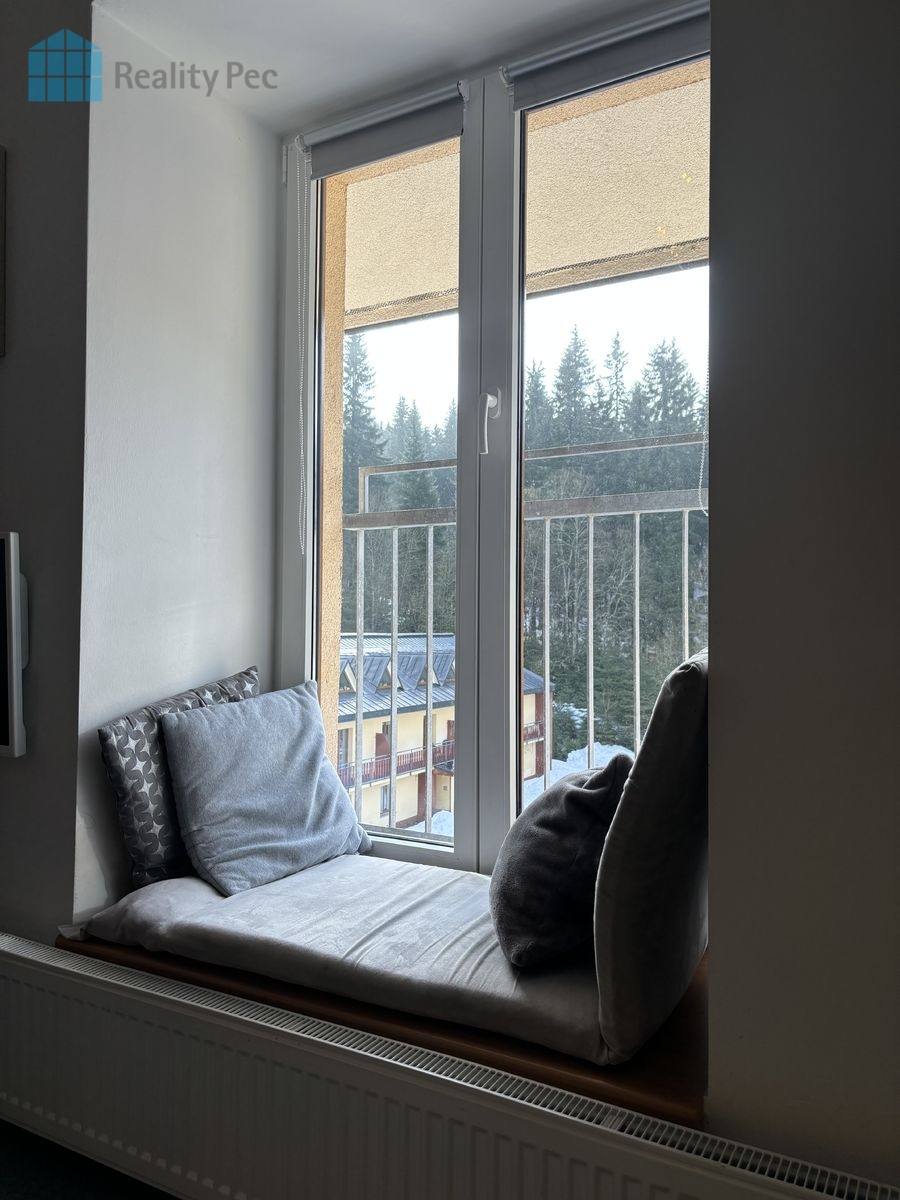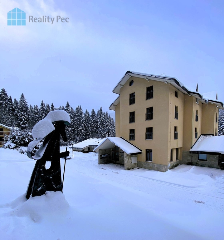 Nabízíme k prodeji dobře udržovaný prostorný apartmán v apartmánovém domě Poustevník. Perfektní poloha přímo u sjezdovky, ale i na klidném místě uprostřed přírody. Apartmán je kompletně vybavený. Koupelna se sprchovým koutem a umyvadlem, samostatné WC s umyvadlem, obývací pokoj s kompletně vybavenou kuchyňskou linkou a jídelním stolem, jedna ložnice s manželskou postelí a vlastním sprchovým koutem, druhá ložnice s manželskou postelí a v patře třetí ložnice se 3 lůžky.