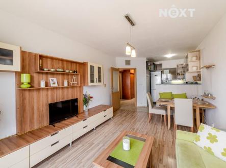 Byt o celkové ploše 56,6 m2 se nachází v prvním patře moderního domu z roku 2003 s JV orientací.