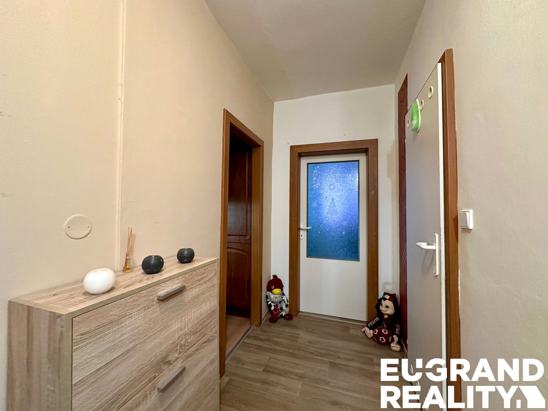 koupelna a kuchyně, vyměněna podlahová krytina za vinyl a instalovány nové dveře včetně obložek. Na chodbě a v ložnici byly navíc vybudovány vestavné skříně, což poskytuje dostatek úložného prostoru.