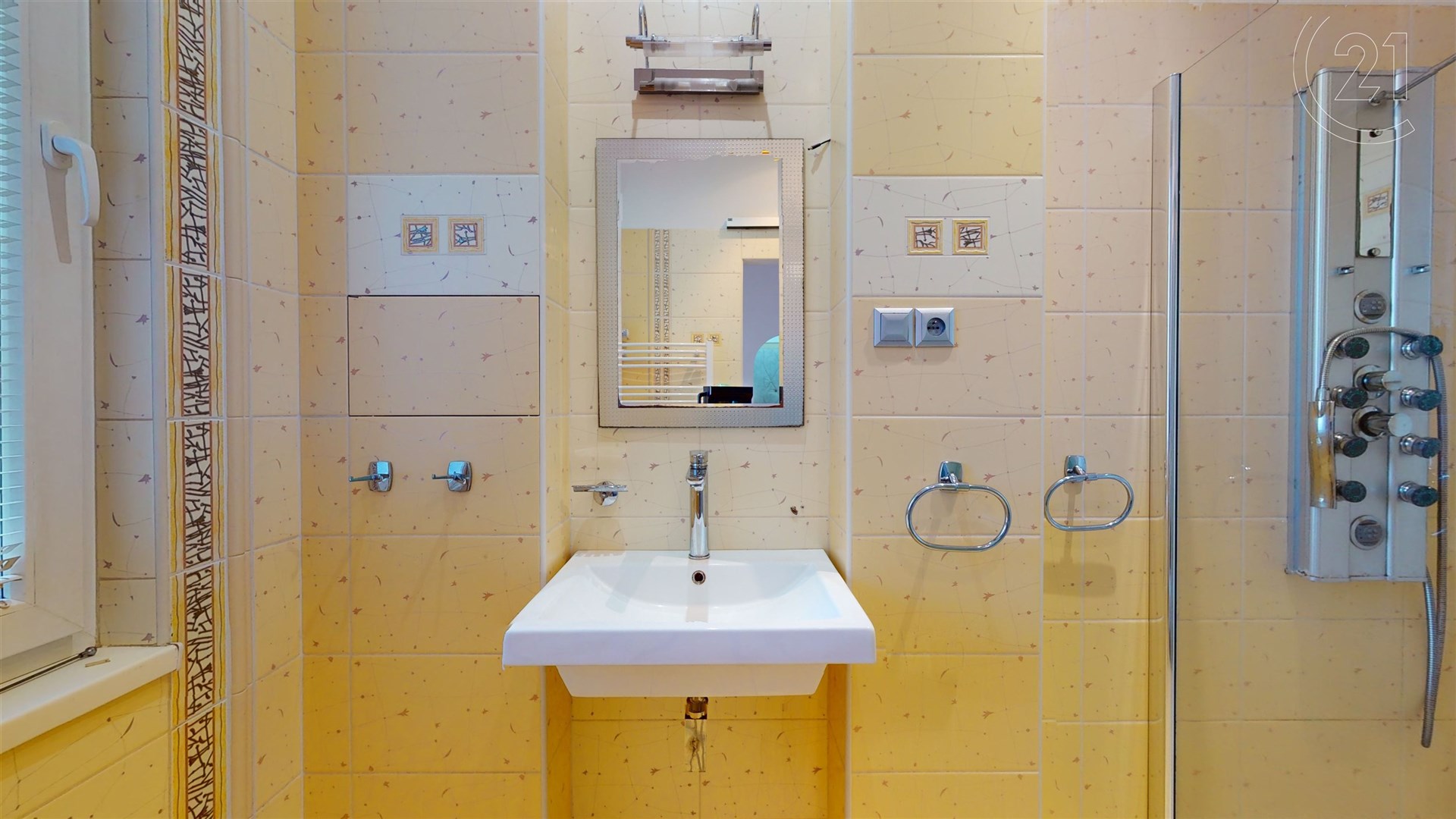 Velkou předností je krásná koupelna se sprchovým koutem a moderními zásuvnými dveřmi. Toaleta je samostatná, což zvyšuje komfort bydlení.