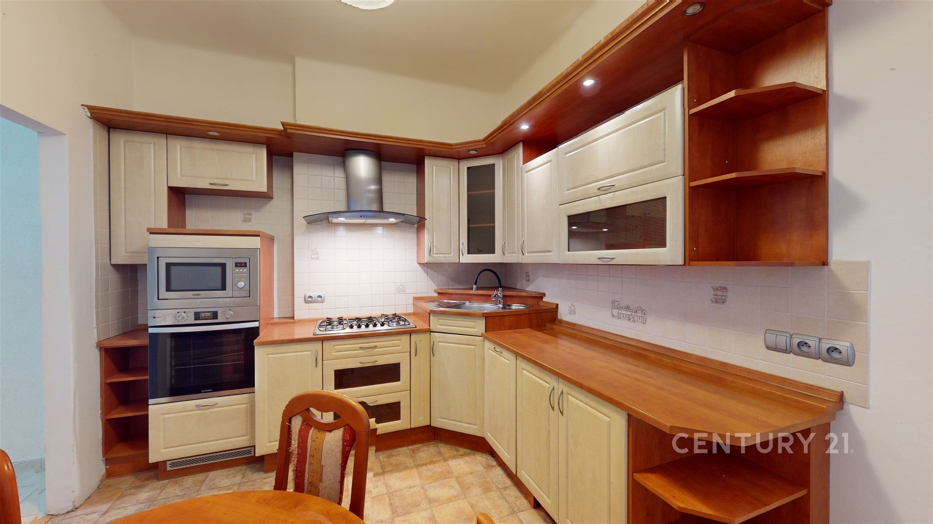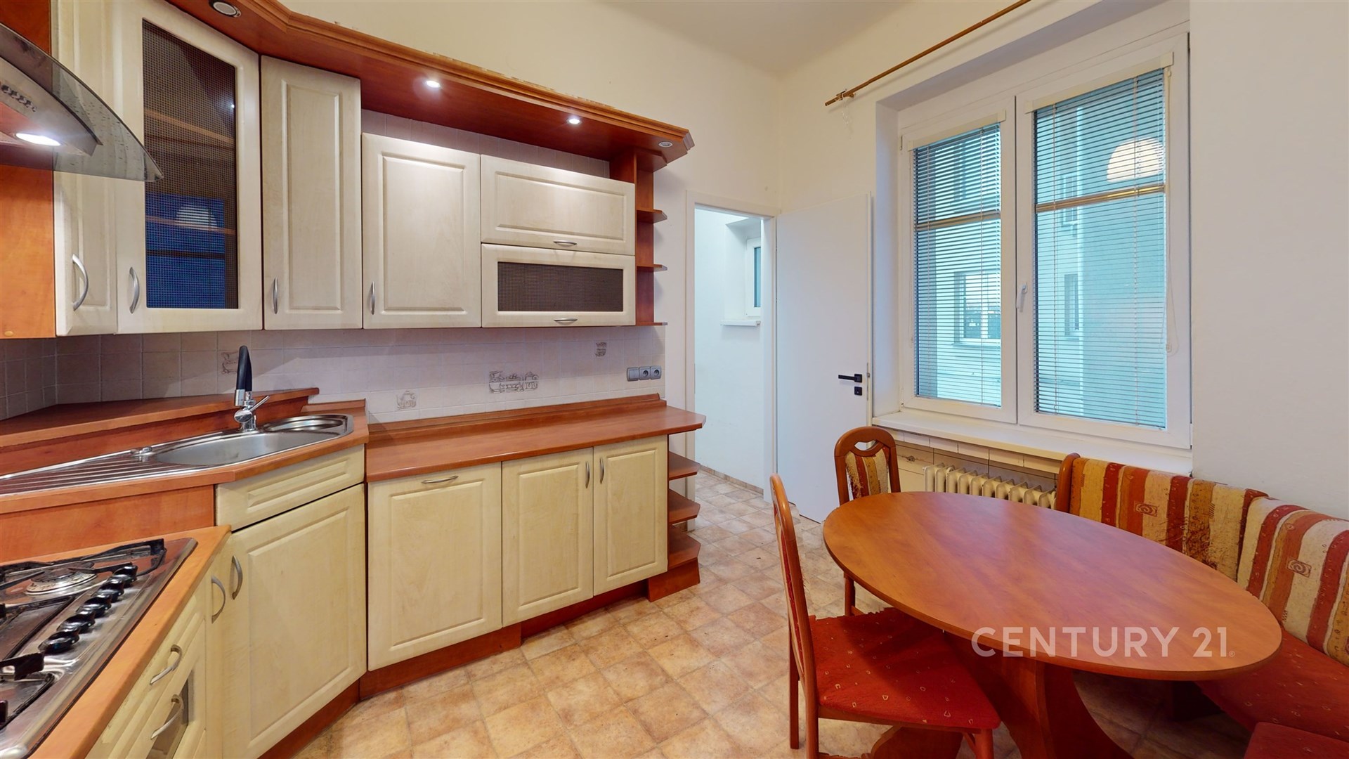Kuchyně je vybavena praktickou kuchyňskou linkou, elektrickou troubou, mikrovlnkou, myčkou a digestoří. Je zde také příprava na pračku a prostor pro jídelní stůl.
