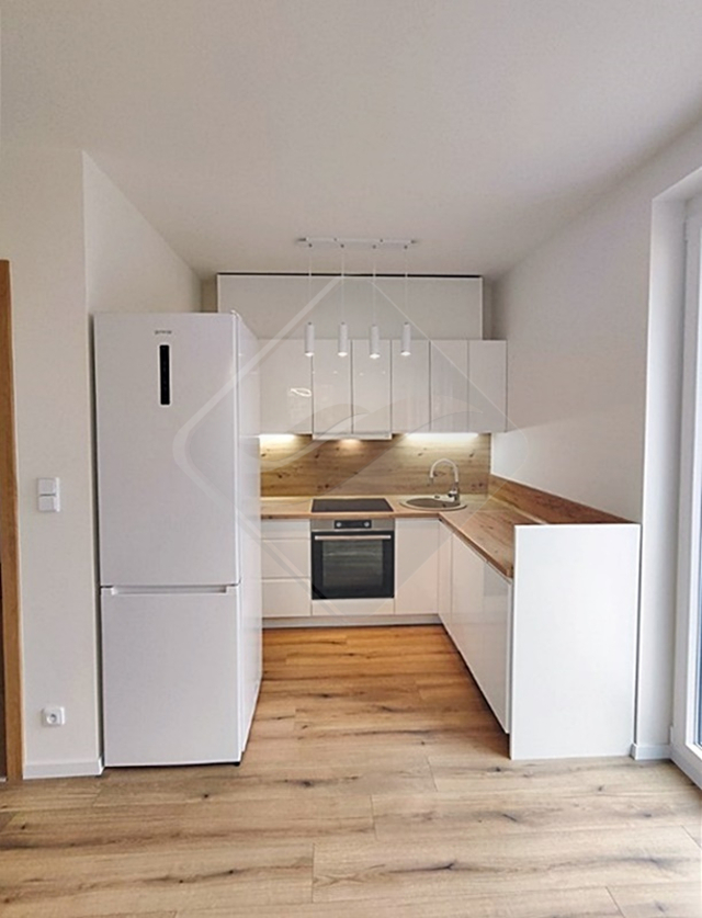 Byt je vybaven kuchyňskou linkou včetně spotřebičů, na podlahách dřevěné podlahy a dlažba. Vše ve velmi vysokým standardu.