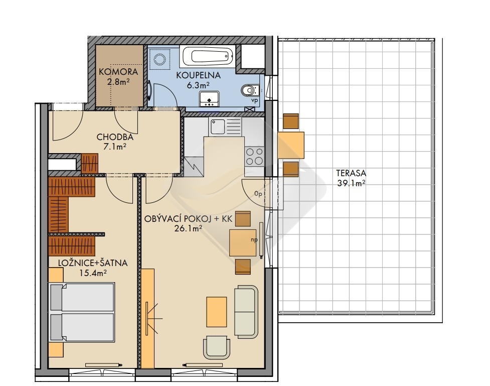 Nabízíme Vám prodej družstevního bytu 2+kk o výměře 59,5 m2 s terasou o výměře 39,2 m2 .