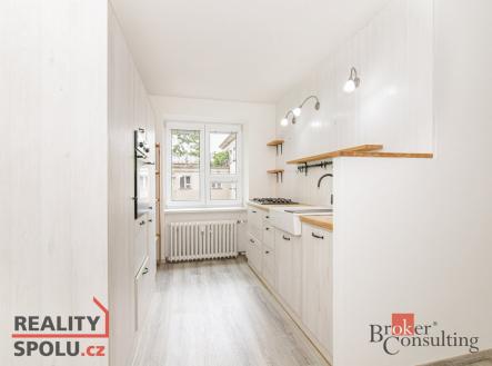 Byt je světlý, útulný a po kompletní rekonstrukci, která zahrnovala výměnu plastových oken, elektroinstalace, rozvodů vody a odpadů, nové omítky, broušené a lakované parkety a novou dlažbu. Moderní kuchyňská linka je vybavena plynovou varnou deskou, horkovzdušnou troubou, digestoří a vestavnou lednicí s mrazákem. Je zde také připraven prostor pro instalaci myčky.