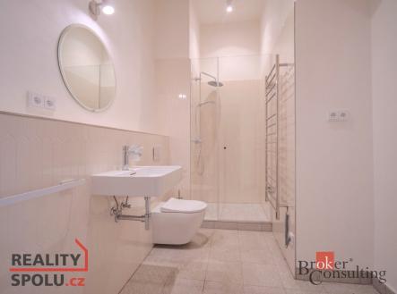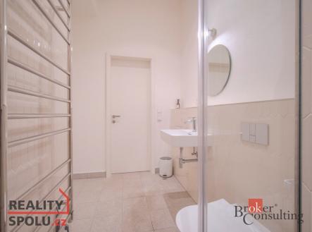 Dále je v bytě chodba a prostorná koupelna, kam se vejde pračka i sušička.