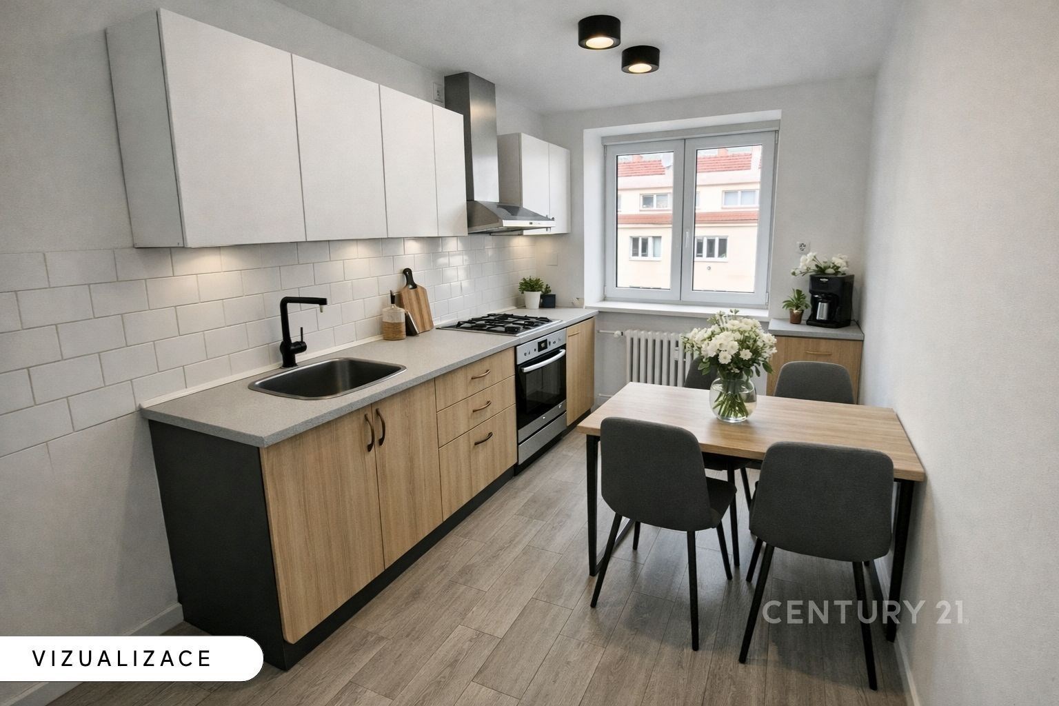 Byt je v původním stavu, vhodný k rekonstrukci s možností úpravy na 3+kk, 4+kk nebo na 4+1. Z obývacího pokoje je vstup na nový balkon s výhledem do zeleného vnitrobloku, orientací na jihovýchodní stranu a s okny opatřenými venkovními žaluziemi na elektrické ovládání. Koupelna s vanou, samostatné WC s oknem, na chodbě také okno a komora jako úložný prostor.