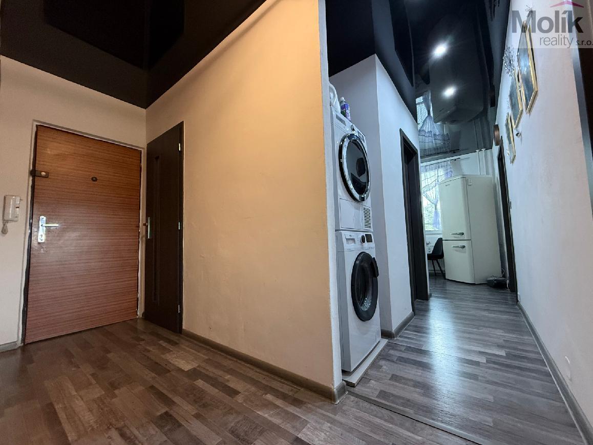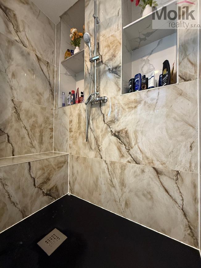 Nabízený byt prošel kompletní rekonstrukcí - kuchyňská linka na míru s vestavěnými spotřebiči (myčka, horkovzdušná trouba, indukční varná deska, digestoř), zděná koupelna, která je oddělena od toalety (vyzděný sprchový kout, umyvadlo se skříňkou, keramický obklad a dlažba, snížený strop).