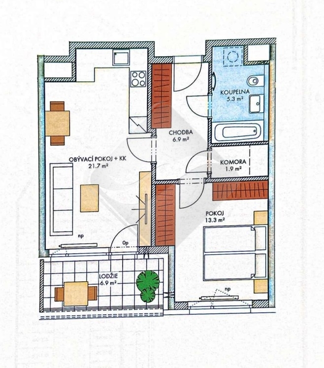 Nabízíme prodej nového družstevního bytu 2 + kk o výměře 51,2 m2 s lodžií 6,9 m2 v projektu Kaskády Barrandov.