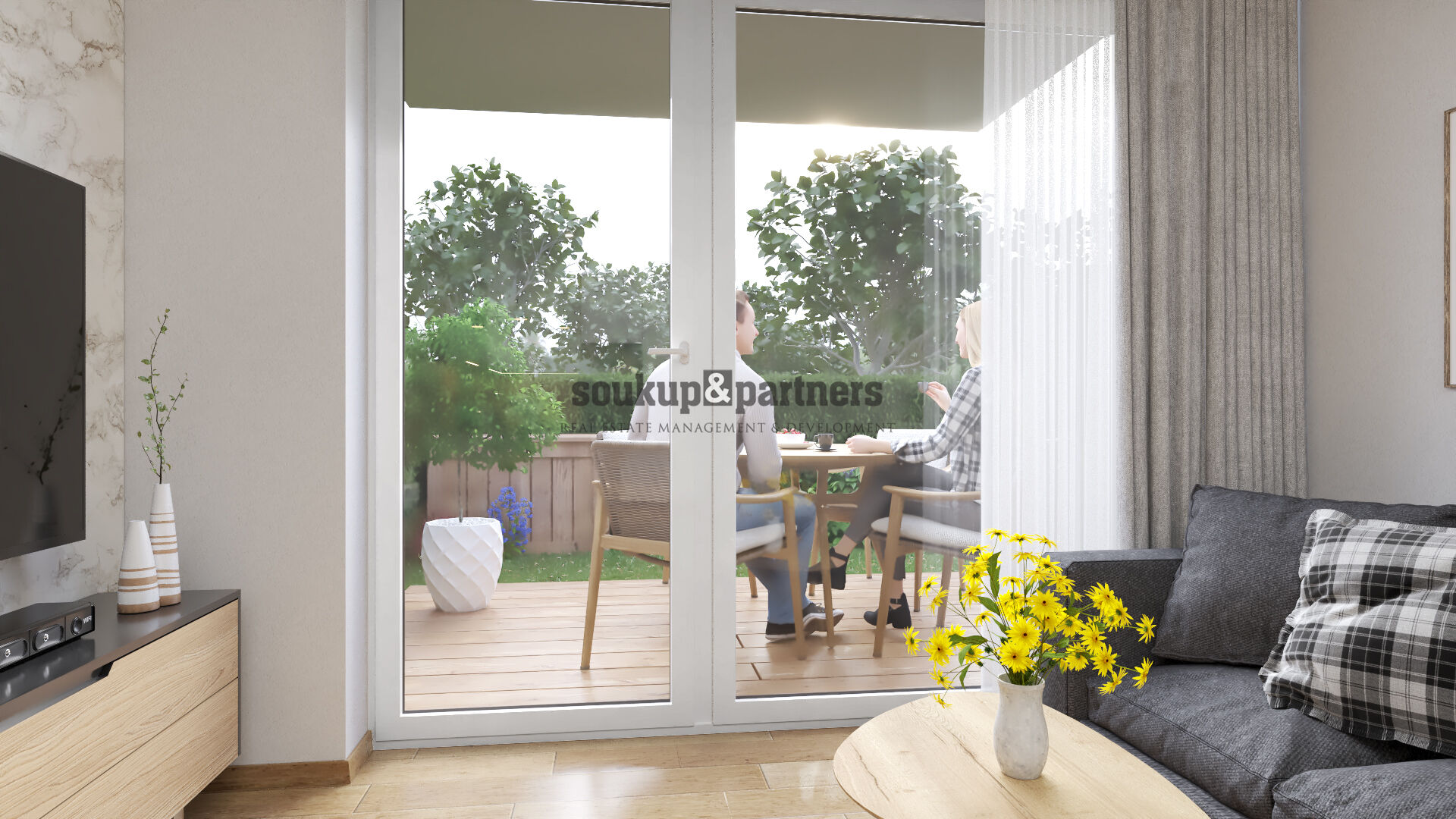Prodej nového družstevního bytu 2+kk s předzahrádkou a možností převodu do osobního vlastnictví v moderní rezidenci Harfa Park – Praha 9.