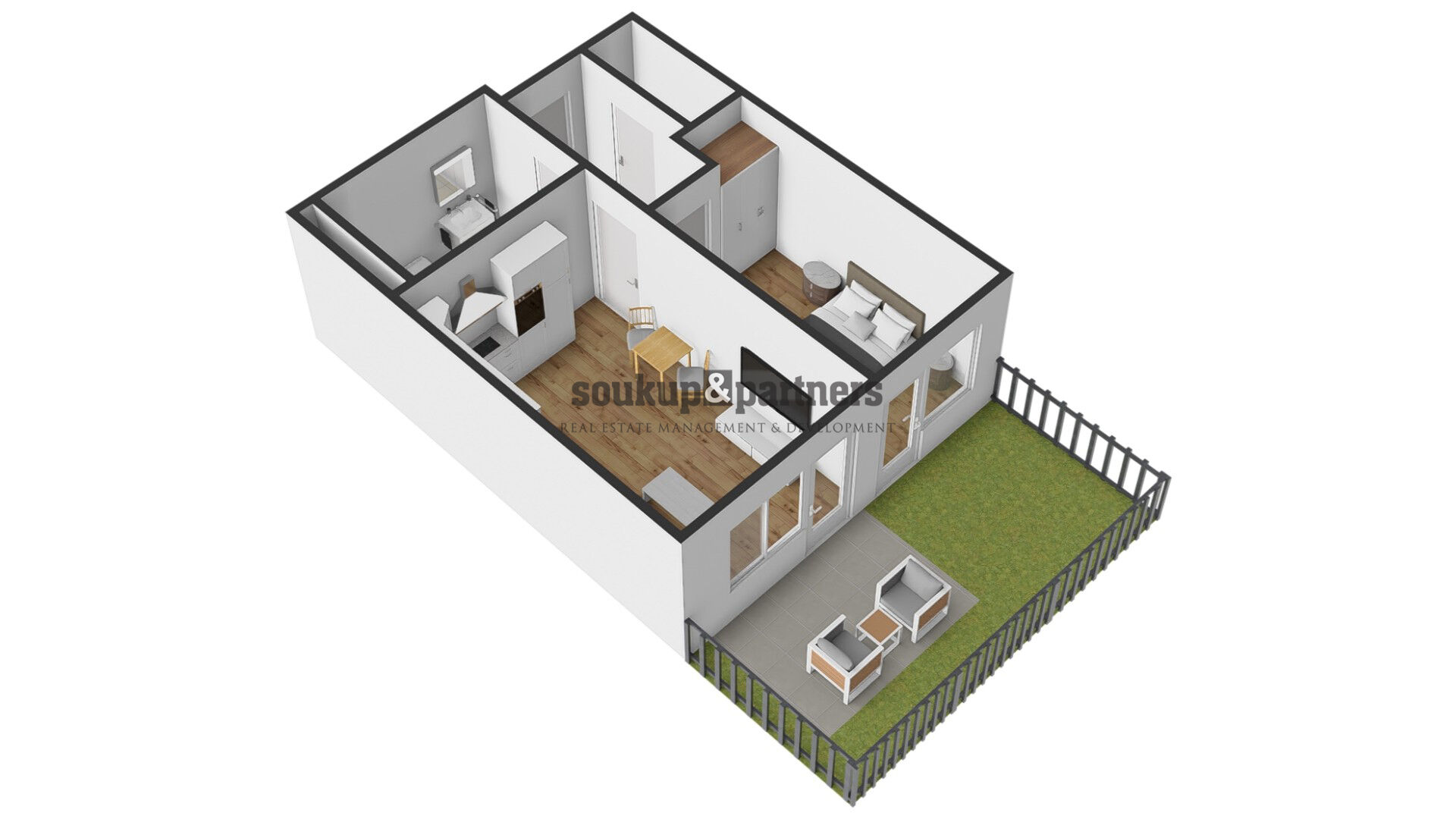 Plocha: 44,2 m² + předzahrádka 19,7 m²