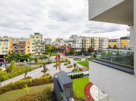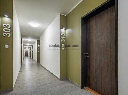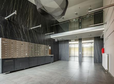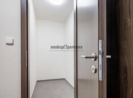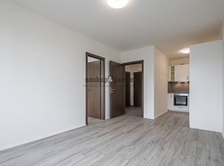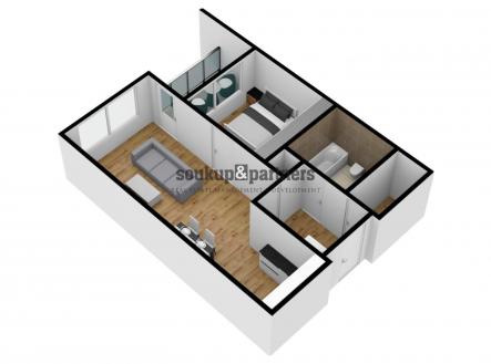 Byt disponuje obývacím pokojem s kuchyňským koutem a vstupem na lodžii, samostatnou komorou o velikosti 2,6 m², která poskytuje praktický úložný prostor a je velkou výhodou, a nadstandardně provedenou koupelnou s vanou a závěsným WC. Součástí je také ložnice s výhledem na lodžii, která zajišťuje dostatek denního světla a klidnou atmosféru. Kvalitní kuchyňská linka je vybavena vestavěnými spotřebiči – myčka, lednice s mrazákem, digestoř s filtrem, indukční varná deska a horkovzdušná trouba. V obytných místnostech je položena laminátová podlaha v dekoru dřeva, která interiéru dodává moderní a útulný vzhled. Byt je připraven k okamžitému nastěhování.