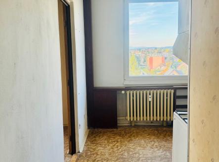 Dispozice: Prostorná vstupní chodba s vestavěnou skříní, ze které se vchází do koupelny s vanou a na samostatné WC (jádro je umakartové), dále do kuchyně čtvercového půdorysu s linkou a sporákem, do obývacího pokoje a dvou pokojů orientovaných na jižní stranu. Z ložnice je vstup na lodžii.