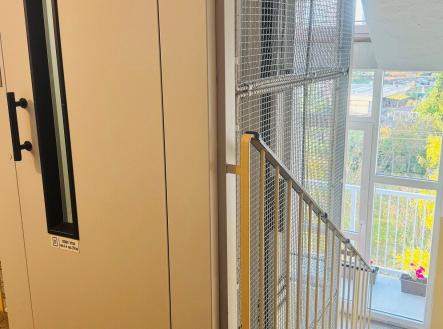 V bytě jsou plastová okna kromě ložnice, podlahy z PVC, elektroinstalace v hliníku.