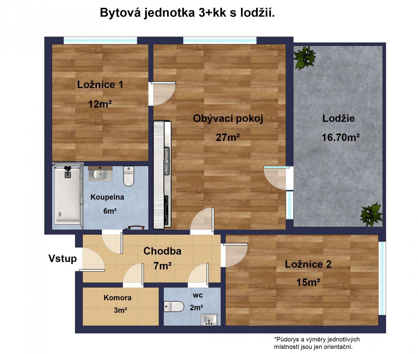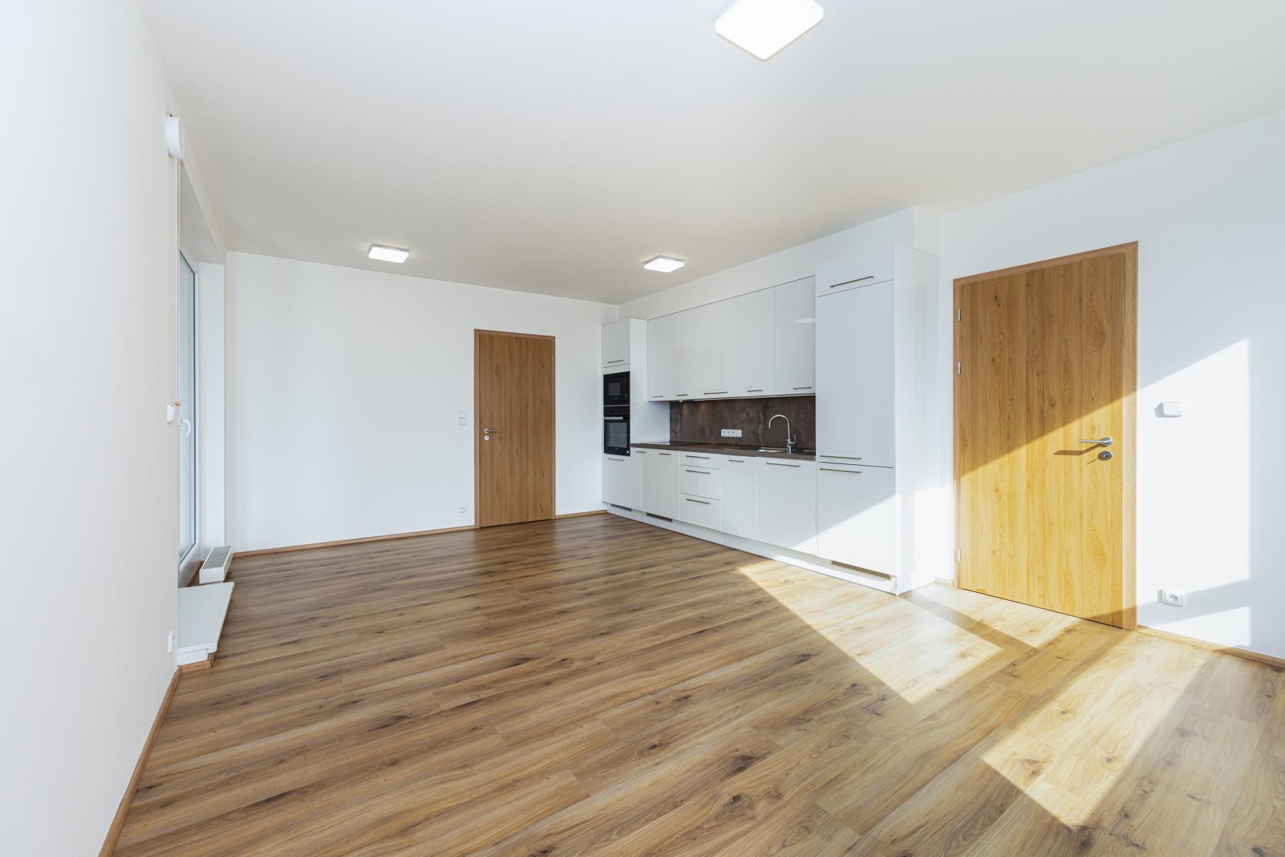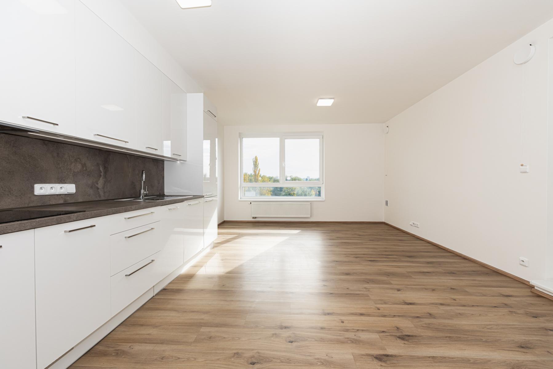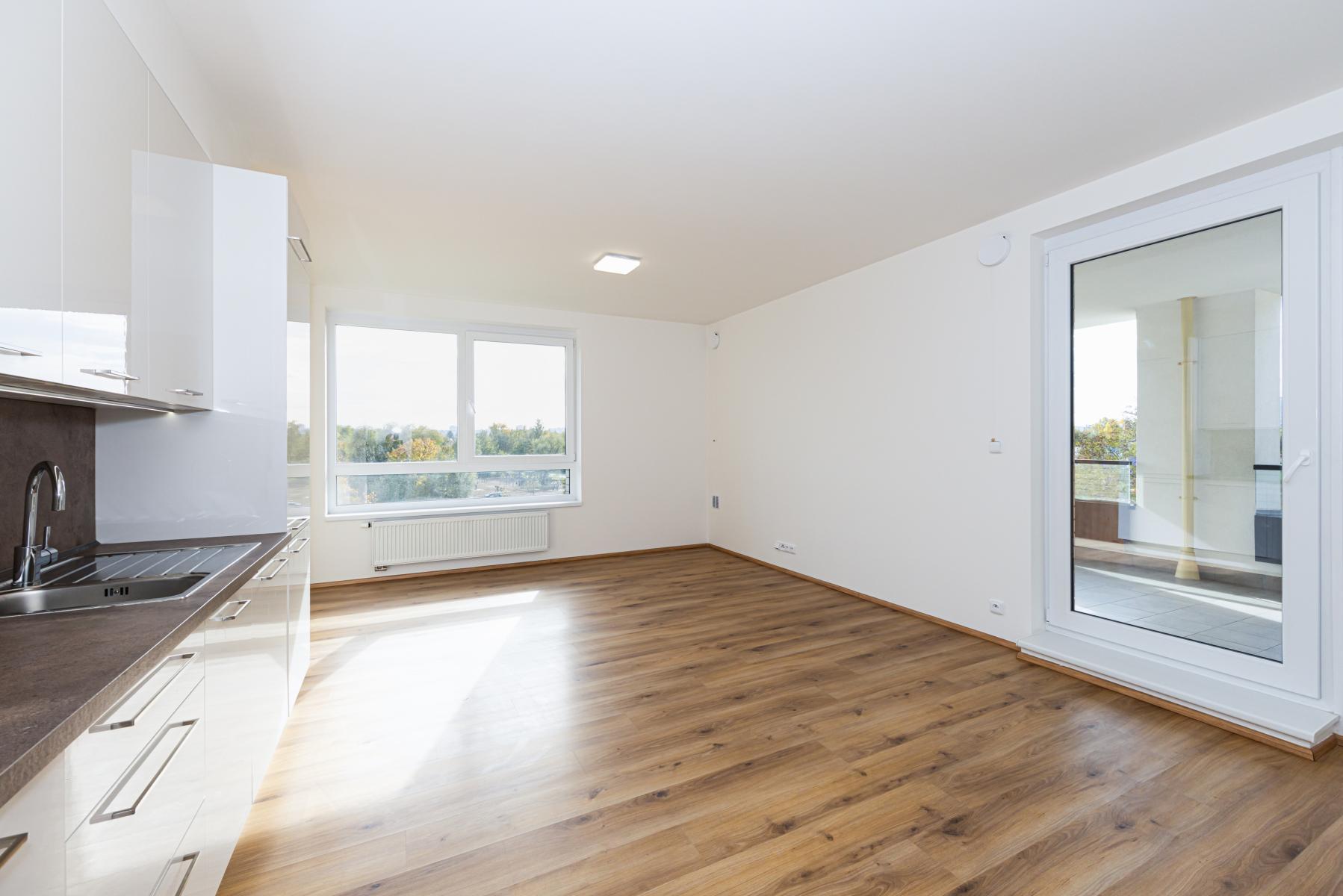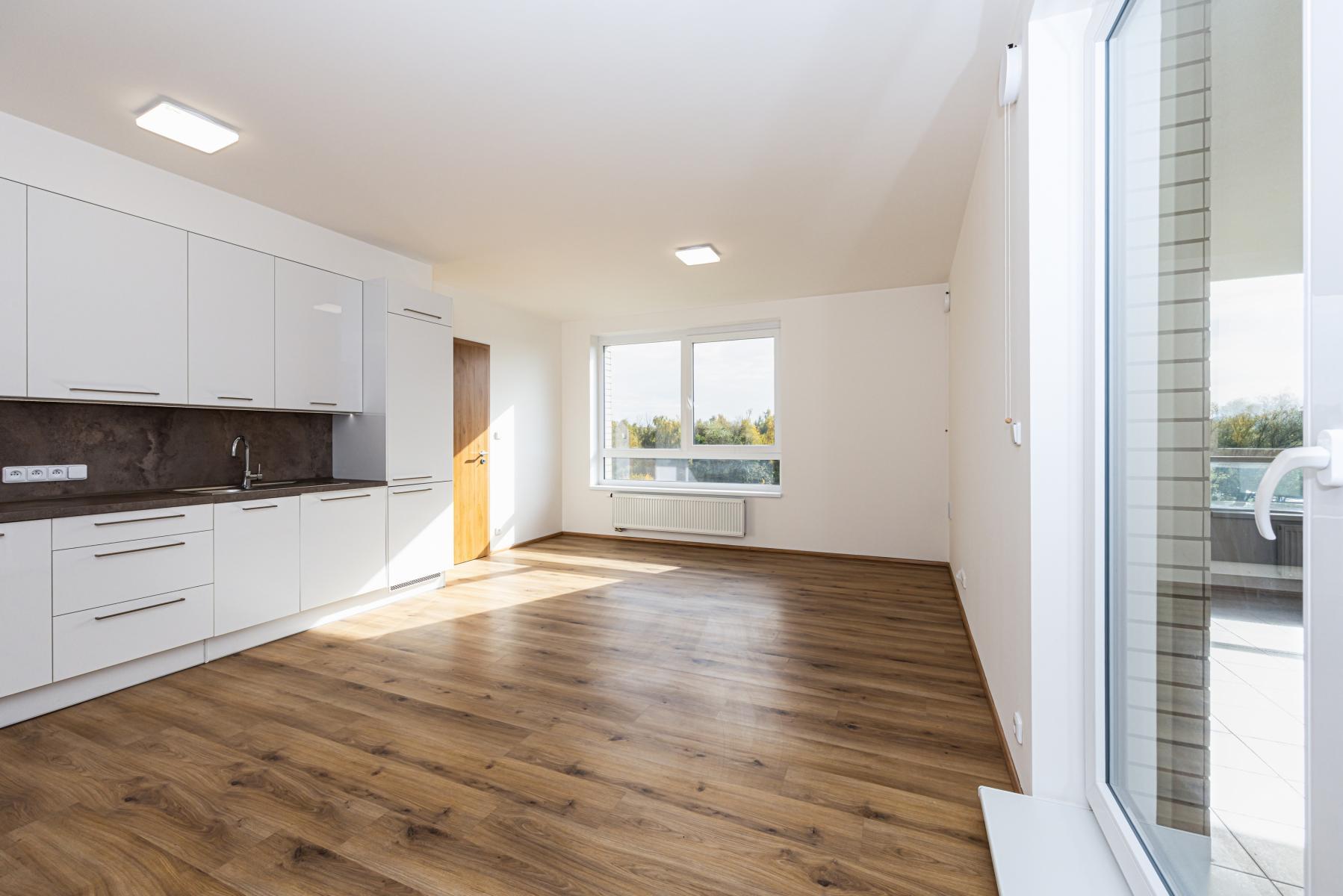 Obývací pokoj s kuchyňským koutem a vstupem na velkorysou lodžii