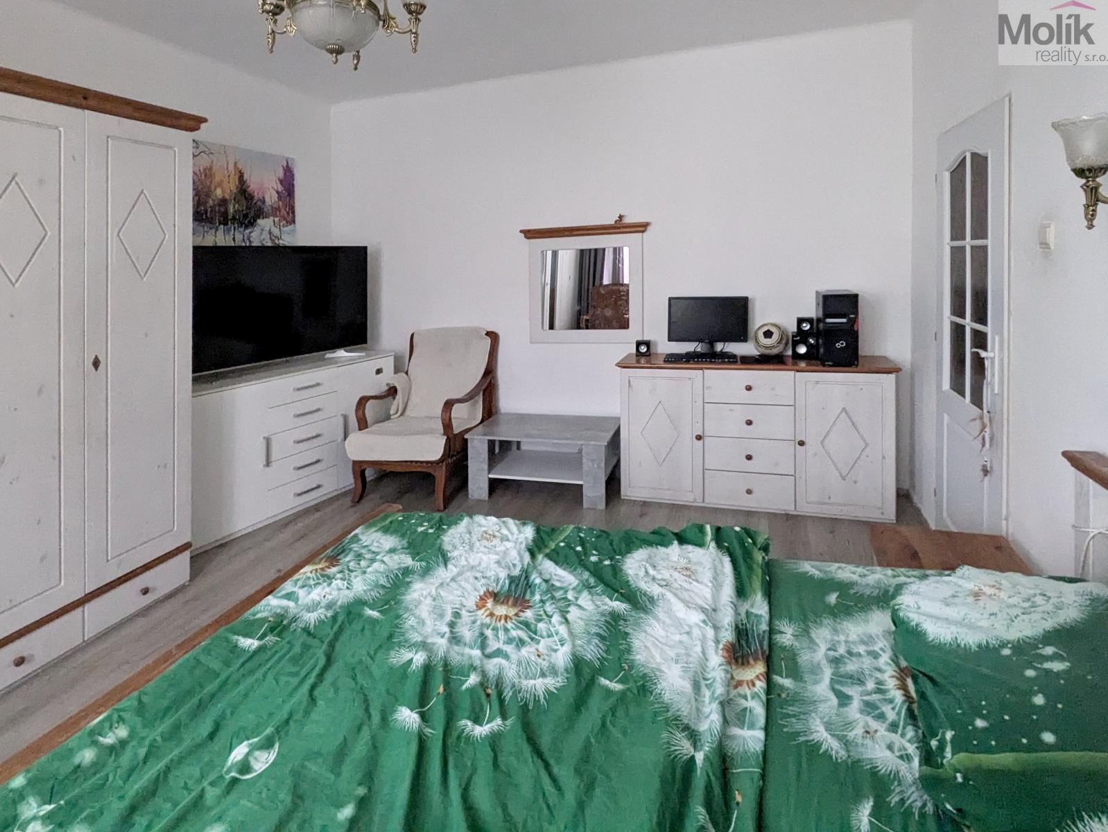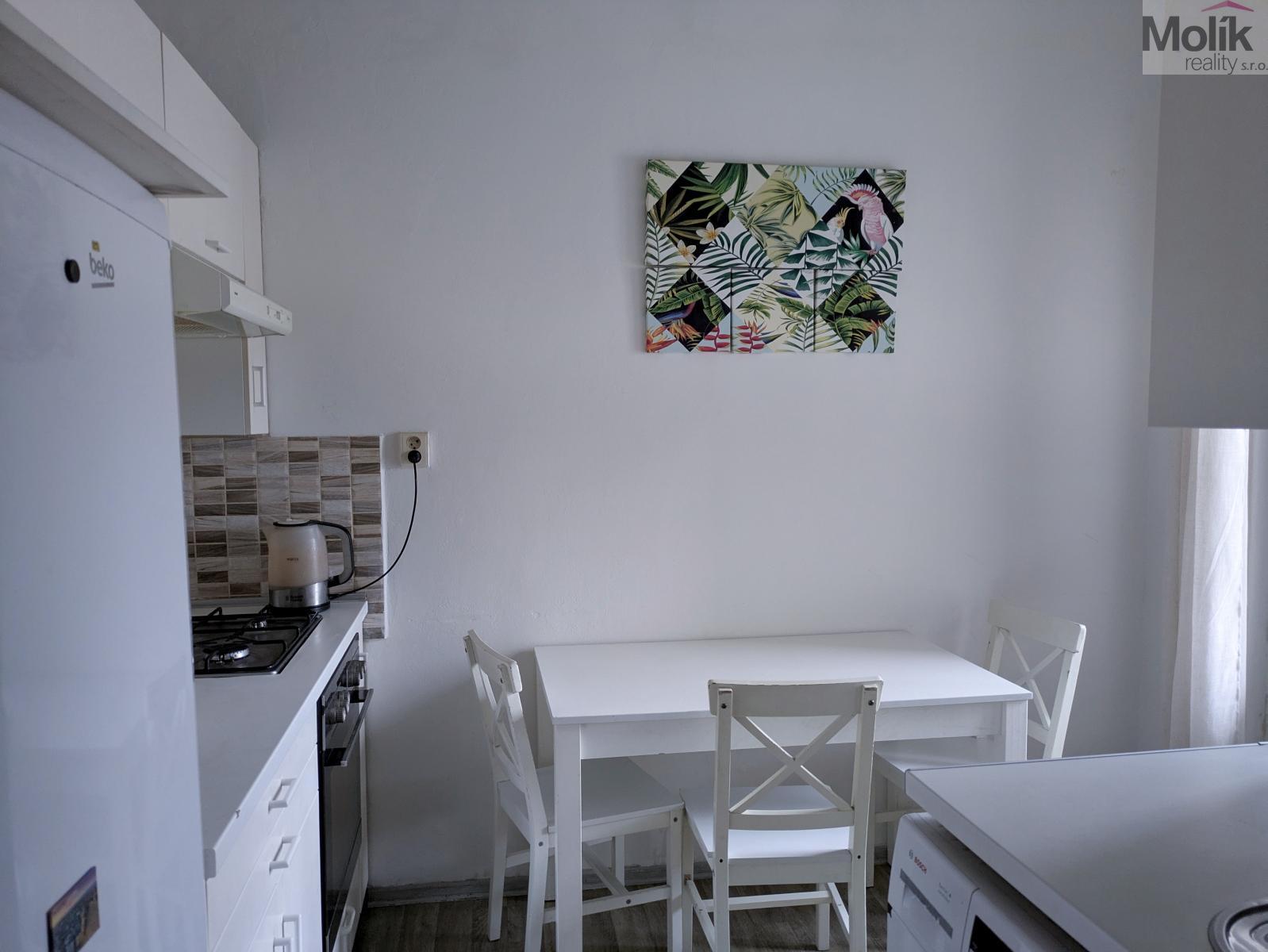 Byt je aktuálně pronajat dlouhodobému nájemníkovi s plánovaným ukončením nájmu do konce roku. Většina nábytku je součástí prodeje (kromě TV a PC v ložnici a gauče s počítačovým stolem v pokoji). Pokud nový majitel nebude mít o nábytek zájem, je možný i odvoz. Vše je na domluvě. Sklepní kóje není k dispozici.