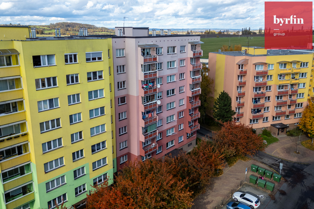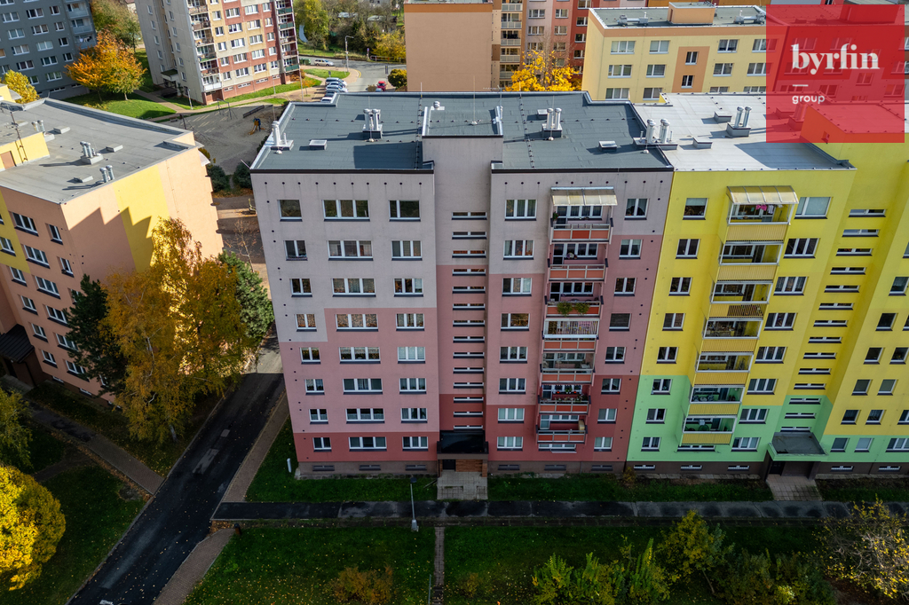 Byt je umístěný v revitalizovaném panelovém domě, kde proběhla kompletní obnova – zateplení fasády, výměna oken i rekonstrukce společných prostor.