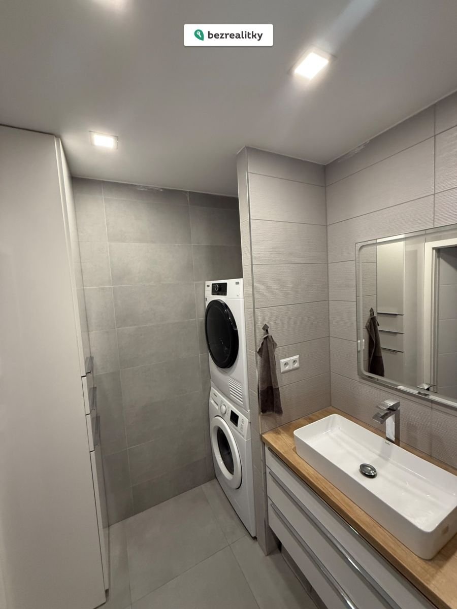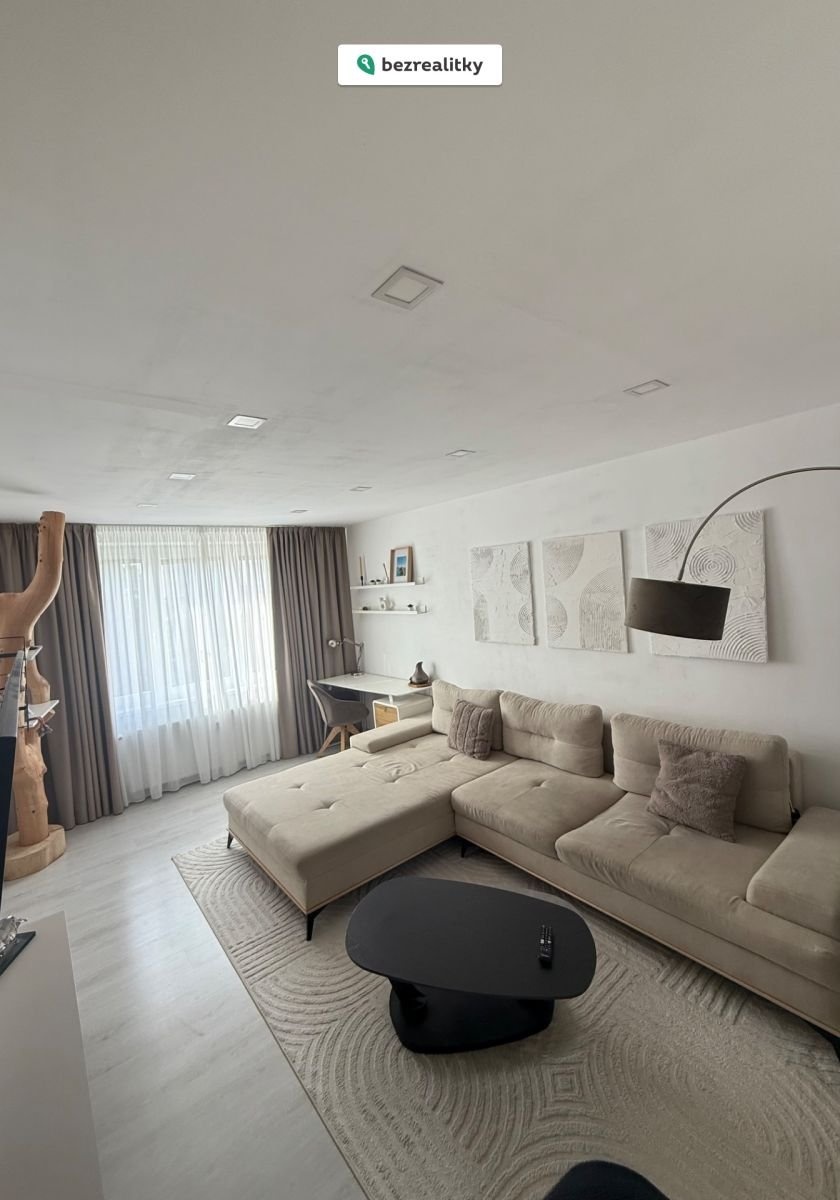 Interiér prošel kompletní moderní rekonstrukcí s důrazem na kvalitu a detail. Součástí vybavení je nábytek na míru, vestavěné spotřebiče značky Whirlpool a klimatizace, která zajišťuje komfort v letních měsících. (90% vybavení zůstává, vše je děláno na míru)