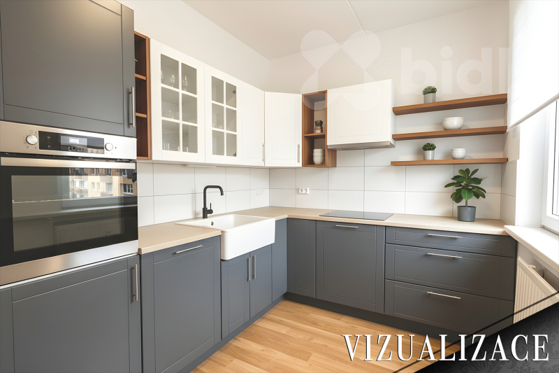 Dispozice je přehledná a funkční. Jádro je původní a kuchyně starší, což dává skvělou příležitost navrhnout si modernizaci přesně podle svých představ. Byt je ve slušném technickém stavu, takže jej můžete okamžitě využívat a úpravy řešit postupně. K dispozici je sklepní kóje přibližně 2 metry čtvereční, ideální pro sezónní věci.