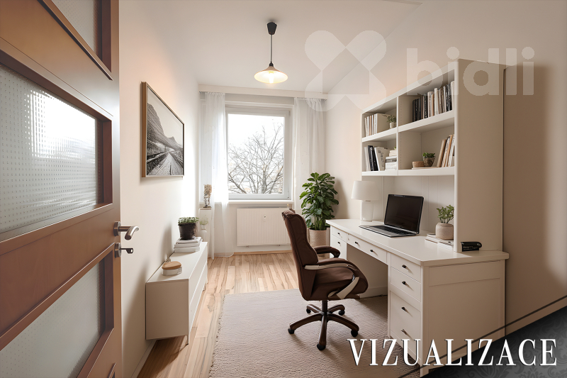 Tento byt 3+1 s podlahovou plochou 68 metrů čtverečních nabízí klidné bydlení s výhledem do zeleně a velmi praktickou dostupnost služeb i dopravy.