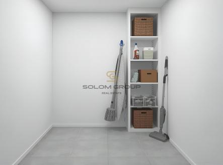 Dispozice je prakticky řešena — ložnice 13,1 m² a další dva pokoje o velikostech 10,8 a 10,7 m² mohou sloužit jako dětské pokoje, pracovna či pokoj pro hosty. Vstupní předsíň s chodbou o výměře 14,3 m² nabízí dostatek prostoru pro vestavěné skříně, nechybí ani komora (2 m²). Koupelna 4 m² je doplněna samostatným WC (1,9 m²).