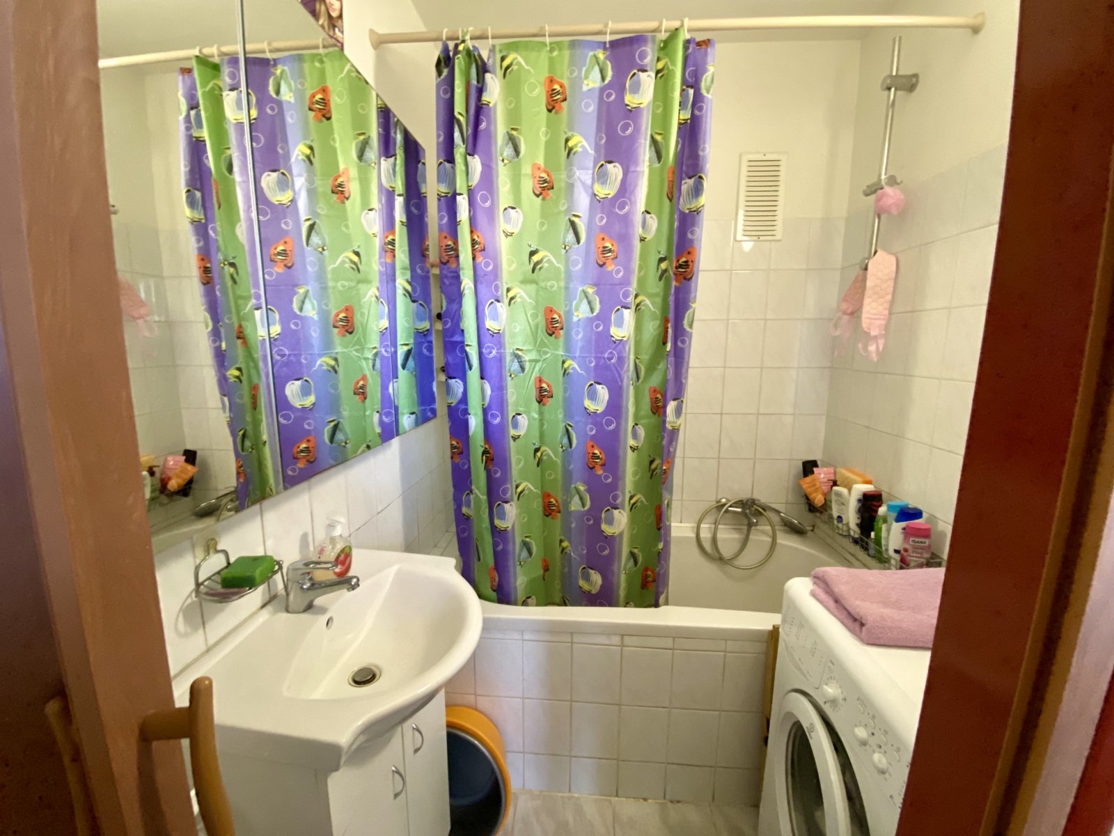 • Koupelna je společná s WC, oddělená sádrokartonem, vkusně upravená a prakticky řešená.