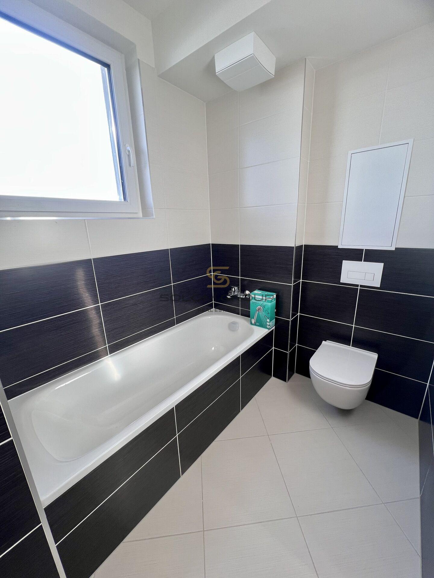 Byt Vám je předán hotový vč. zařízené kuchyňské linky vybavené spotřebiči (indukce, lednice s mrazákem, el. trouba, myčka nádobí, digestoř), včetně koupelny (umyvadlo, vana, topný žebřík), samostatné WC s umyvadlem, dále interiérové dveře, plastová okna, vinylová podlaha a dlažba, nové rozvody vody, elektřiny a odpadů, protipožární vchodové dveře. Byt je zcela nový, nebydlený.