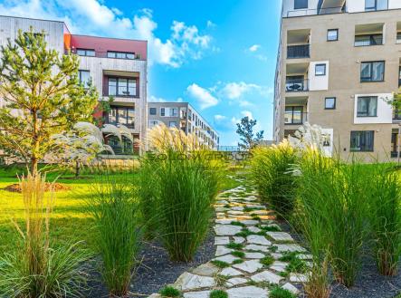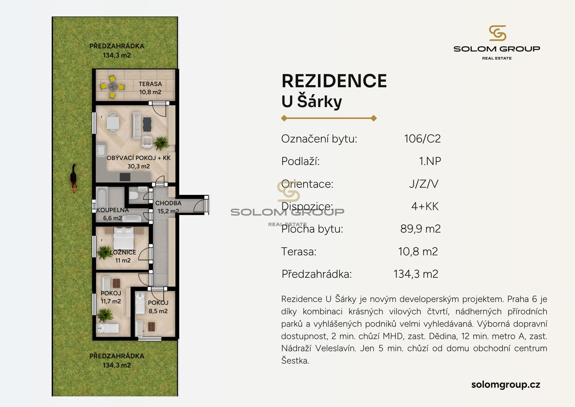 Prodej nového bytu 4+kk o velikosti 89,8 m² + předzahrádka 134,3 m², terasa 10,8 m², který se nachází v 1. NP cihlové novostavby v rezidenci U Šárky, Praha 6 – Ruzyně (Dům C2).