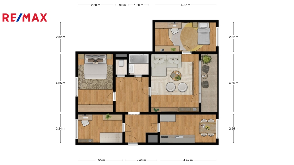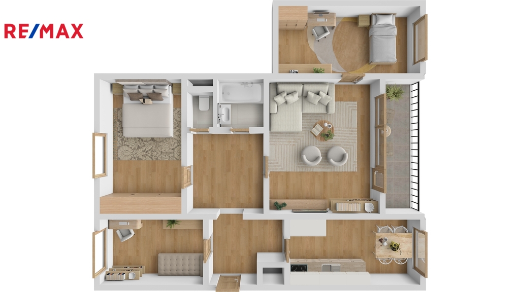 Byt působí vzdušně, má praktickou dispozici se samostatnými pokoji a dostatek prostoru pro pohodlné rodinné bydlení. K bytu náleží také sklep o velikosti 4 m².