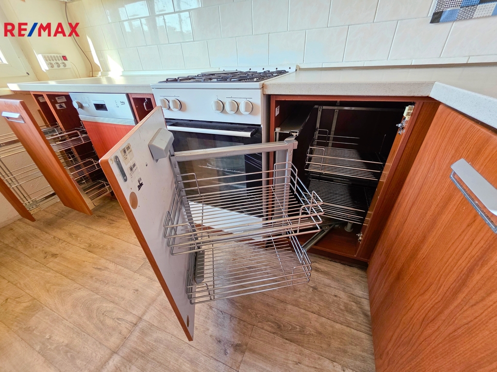 Byt je v původním, udržovaném stavu a v případě potřeby lze využívat bez nutnosti okamžité rekonstrukce. Původní kuchyně byla modernizována, rozšířena pracovní plocha a doplněny praktické úložné prostory včetně velké úložné skříně.