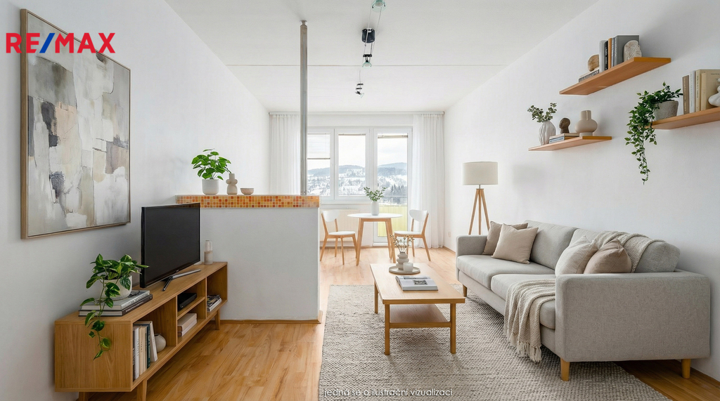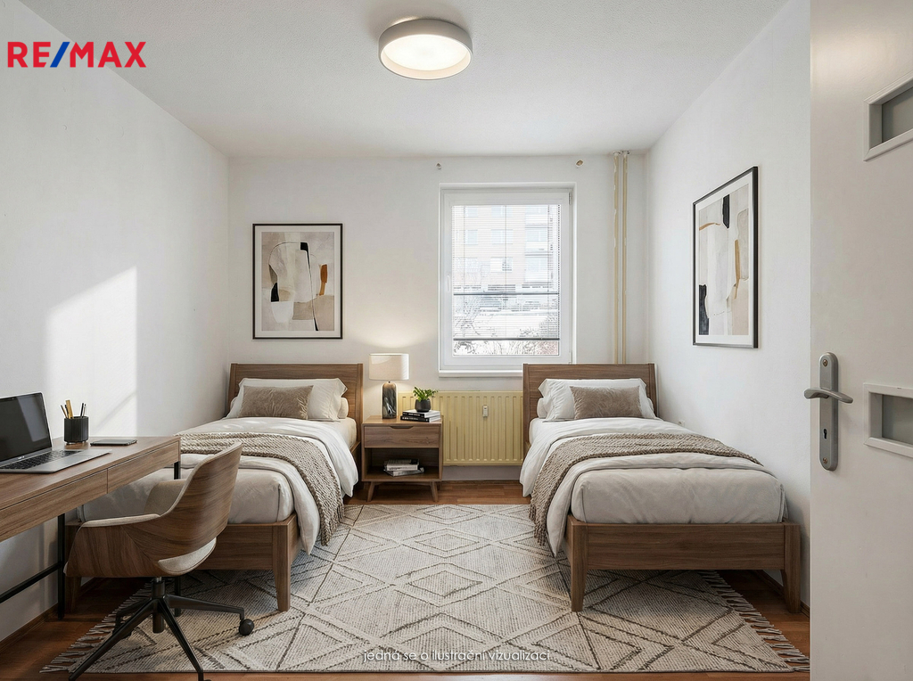 Byt má zděné jádro a velmi povedené dispoziční řešení: prostorná předsíň s dostatkem úložného prostoru, samostatná toaleta, koupelna s vanou, kuchyně, obývací pokoj, ložnice a dětský pokoj. Velkou výhodou je příjemný balkón pro relaxaci. K bytu náleží dvě sklepní kóje v přízemí domu a součástí domu je společná kolárna a sušárna. Byt má velmi nízké provozní náklady, což je velká přednost jak pro vlastní bydlení, tak i jako investici.