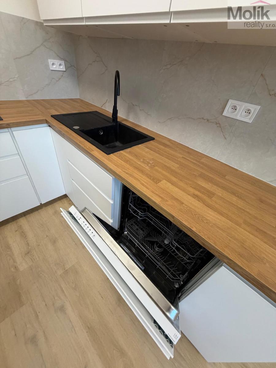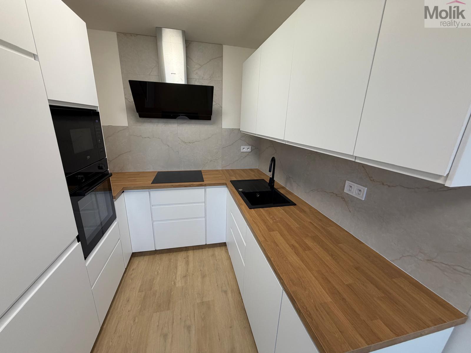 Byt je po kompletní rekonstrukci (štuky, zdi, elektřina, kuchyňská linka, nové elektrospotřebiče, voda, koupelna, podlahy a dveře).