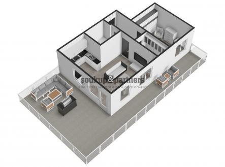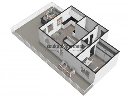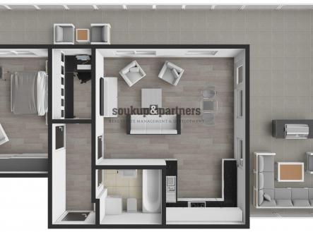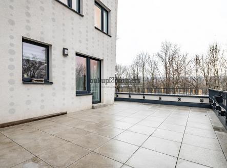 Hlavní předností tohoto bytu je velkorysá terasa, která výrazně rozšiřuje obytný prostor bytu a v letních měsících se stává jeho přirozeným centrem. Nabízí dostatek místa pro posezení, gril i relaxaci, takže zde můžete pohodlně trávit většinu volného času – od ranní kávy až po večerní setkání s přáteli.