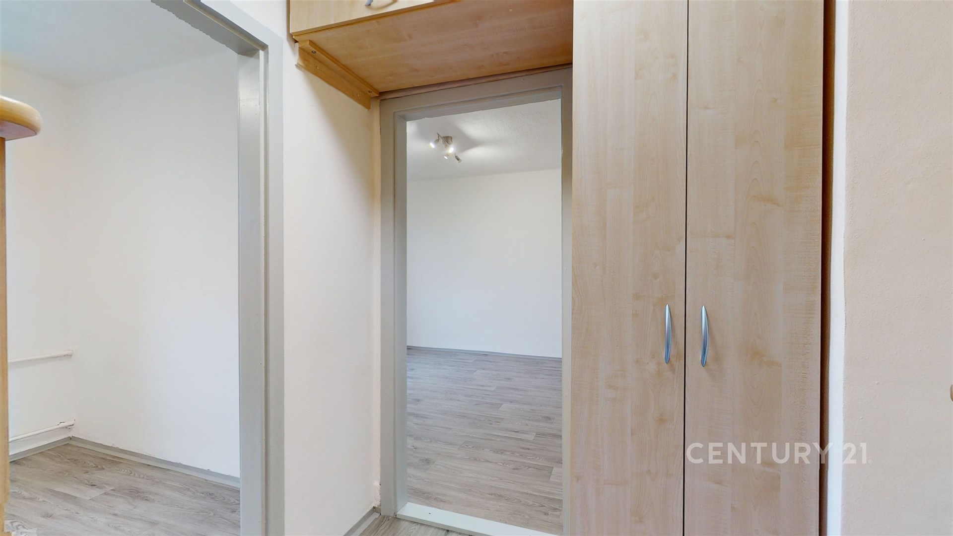 Hned při vstupu do bytu vás přivítá chodba, která je průchozí do všech částí bytu.