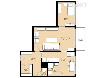 Byt je hezký, udržovaný a působí velmi světlým dojmem díky umístění ve vyšším patře. Praktická dispozice nabízí dostatek úložného prostoru – komoru přímo v bytě i sklepní kóji v přízemí domu. Vhodné jak pro vlastní bydlení, tak jako investice k pronájmu.
