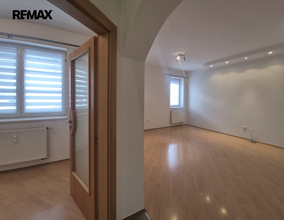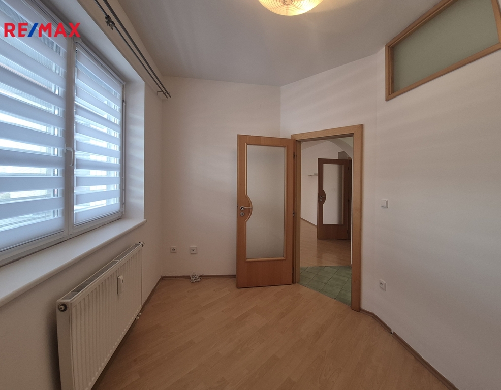 Byt má plastová okna včetně nových vnitřních rolet den/noc, venkovních rolet a pěknou prostornou kuchyňskou linku se spotřebiči.