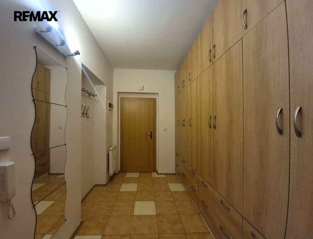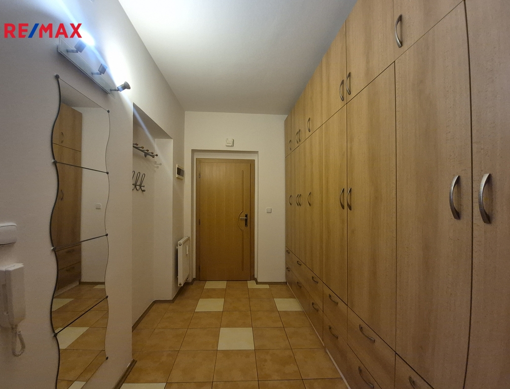 Byt se sestává z prostorné předsíně s vestavěnými skříněmi, obývacího pokoje, menší ložnice, kuchyně a koupelny s WC. K bytu patří zděný sklep o výměře 6,70 m2 v suterénu domu.