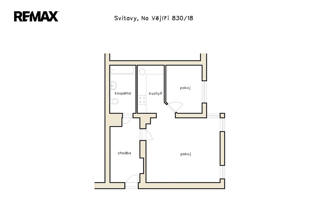 Prodej velmi pěkného družstevního bytu o velikosti 2+kk nacházejícího se v 1. NP cihlového domu ve Svitavách-Lánech na ul. Na Vějíři.