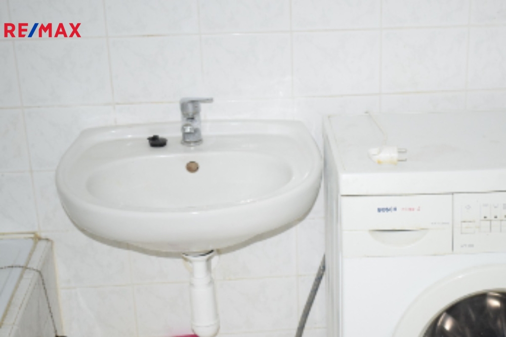 Součástí bytu je koupelna s vanou, umyvadlem a pračkou, samostatné WC a vstupní chodba. K bytuje zděná sklepní koje 2,61 m2 , k dispozici je také společná kolárna a kočárkárna .