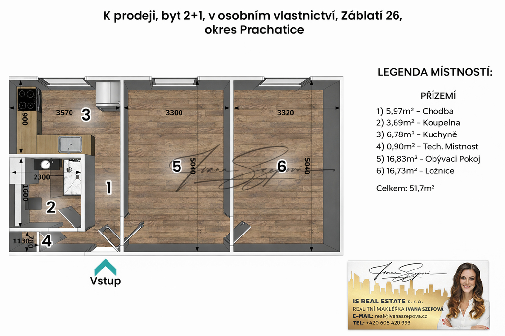K prodeji, kompletně zrekonstruovaný byt o dispozici 2+1 a podlahové ploše 52 m², ve 3. patře, v klidné obci Záblatí v okrese Prachatice. Byt prošel kompletní rekonstrukcí zahrnující nové elektrické rozvody, instalaci nového elektrokotle a kompletně nového topného systému. Součástí úprav jsou sádrokartonové stropy s vestavěným LED osvětlením, nové plovoucí podlahy včetně protihlukové izolace, moderní dlažba a obklady v koupelně, kuchyňská linka vyrobená na míru, nové interiérové dveře a nové vstupní bezpečnostní dveře. Celý byt je řešen v moderním a nadčasovém designu. K bytové jednotce náleží dva sklepy poskytující dostatek úložného prostoru. Měsíční náklady na byt činí cca 2.648 Kč a zahrnují fond oprav, pojištění, poplatek za správu v SBD, investice, elektřinu společných prostor, vodné, stočné. Byt je v družstevním vlastnictví s orientací na západ. V domě je plánováno zateplení, jehož realizace je předpokládána v dubnu, což přispěje ke snížení energetické náročnosti budovy a zvýšení budoucí hodnoty nemovitosti. Více informací Vám poskytne realitní makléřka Ivana Szepová.