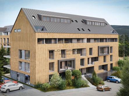 Prodej nového apartmánu 4+kk/,106 m² (byt o výměře 88,42 m² + lodžie 10,42 m² + terasa o výměře 7,10 m²) který se nachází ve 4. NP cihlové novostavby v rezidenci ZORA Harrachov, Krkonoše (Dům A)