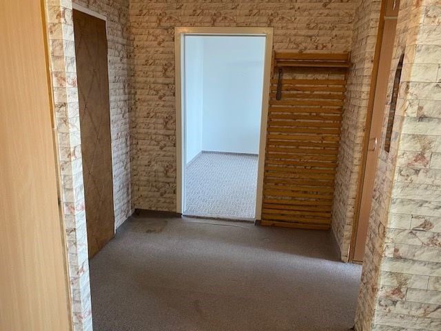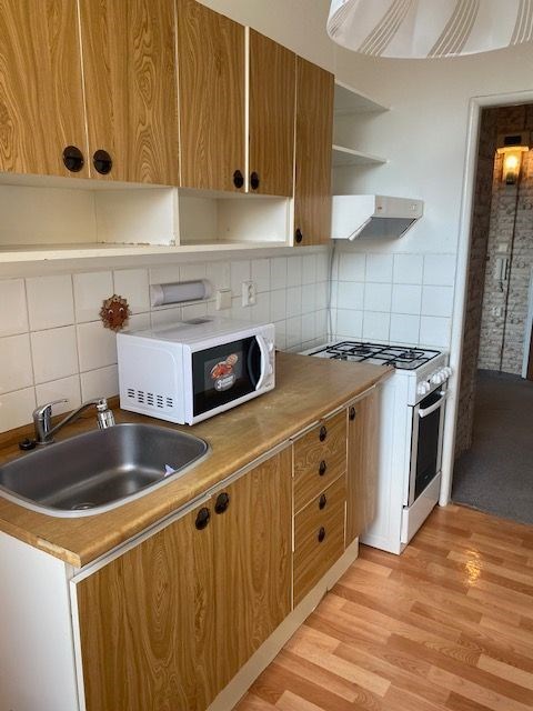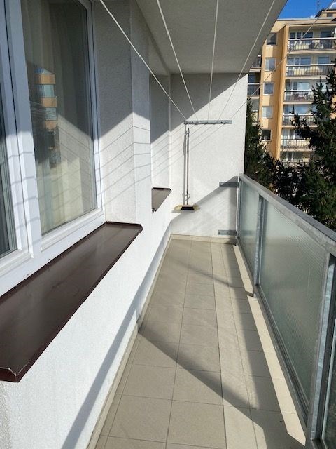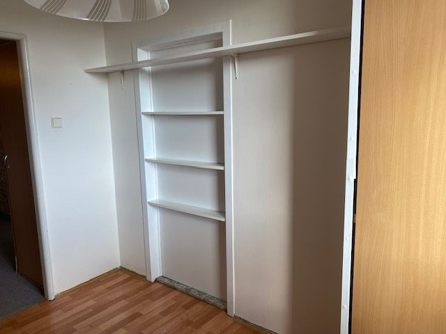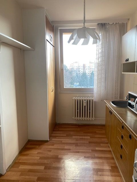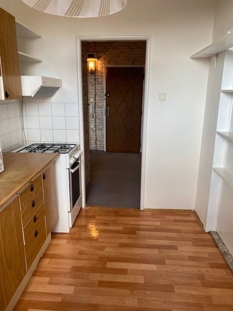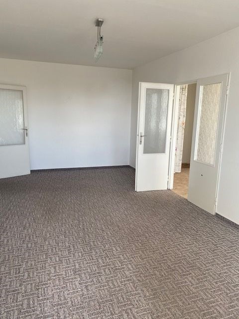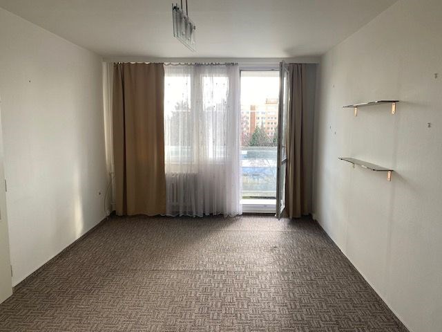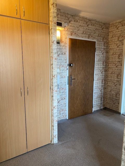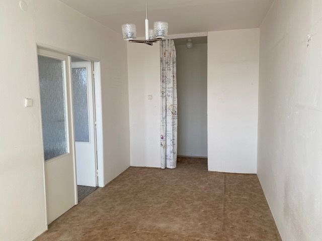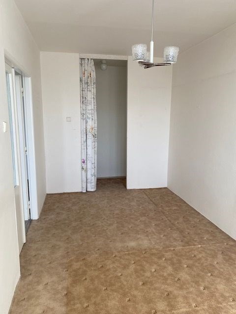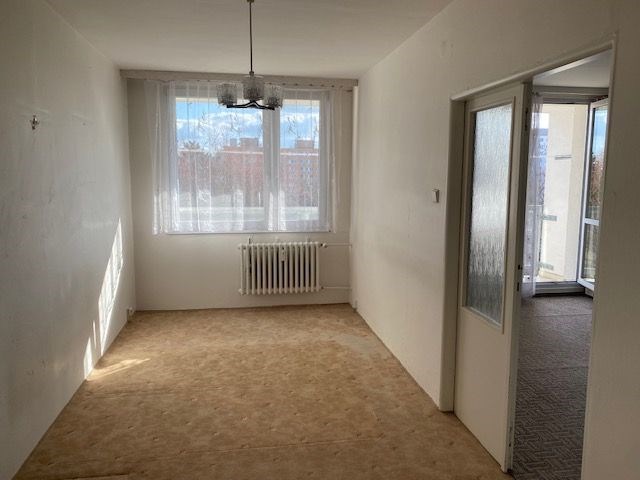 linka, v předsíni vestavěná skříň, koupelna s vanou, toaleta zvlášť, jádro je umakartové, na podlahách jsou koberce a pvc, ústřední vytápění, orientace oken na jižní stranu, výhled do zeleně. Pokoj 19,80 m2 , pokoj 12,10 m2 , pokoj 12,20 m2 , kuchyň 6,50 m2 , předsíň 9,20 m2 , koupelna 2,50 m2 , wc 1 m2 , komora 2,2 m2 , lodžie 5,80 m2 , sklep 1,80 m2 . Dům je po rekonstrukci (výtah, plastová okna, střecha, stoupačky, zateplení pláště budovy). Anuita je splacena, v současné době není možný převod jednotky do osobního vlastnictví.