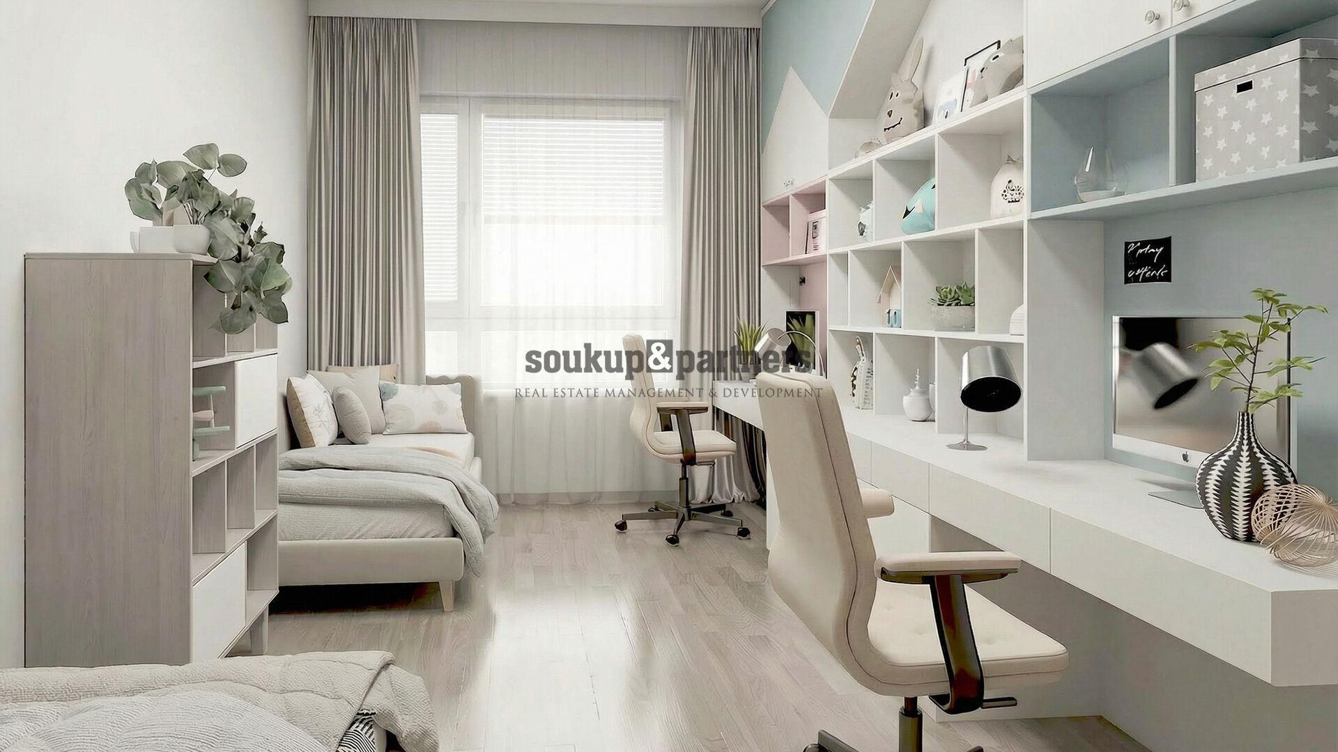 K bytu náleží garážové stání a sklepní kóje, které jsou již zahrnuty v ceně. Předpokládané dokončení projektu je ve druhé polovině roku 2026.