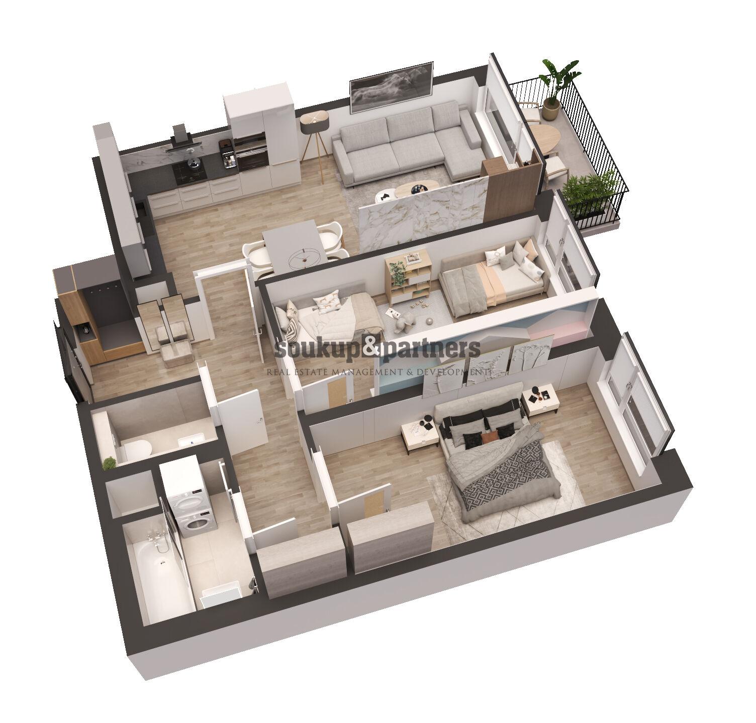 Nabízíme k prodeji nový družstevní byt o dispozici 3+kk s balkonem o celkové ploše 81 m² v moderním rezidenčním projektu PORTTI Kladno.