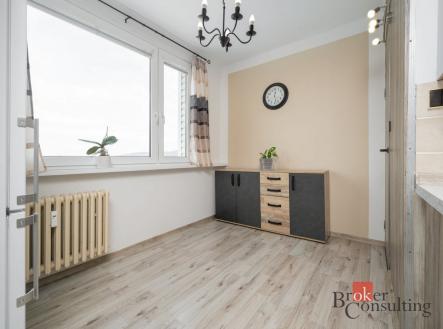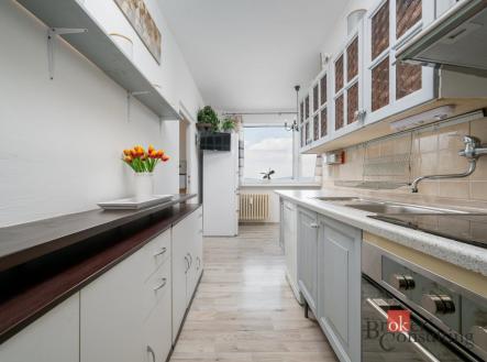 Dispozice bytu je velmi praktická. Po vstupu se nachází prostorná chodba s komorou, která nabízí dostatek úložného prostoru. Kuchyňská linka je vybavená troubou s indukcí, myčkou a digestoří. Navazuje jídelna, kterou lze využít například jako dětský pokoj, pracovnu nebo pokoj pro hosty. Dále byt nabízí komfortní obývací pokoj se vstupem na lodžii, ložnici a další samostatný pokoj. Koupelna a toaleta jsou v původním stavu, což nabízí ideální příležitost k rekonstrukci dle vlastních představ nového majitele.