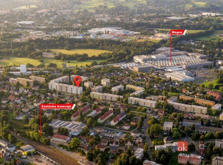 Byt se nachází v klidné a vyhledávané lokalitě s dobrou dostupností do centra Liberce a kompletní občanskou vybaveností v okolí. V docházkové vzdálenosti se nachází dětské hřiště, mateřská i základní škola, autobusová zastávka a obchod s potravinami.