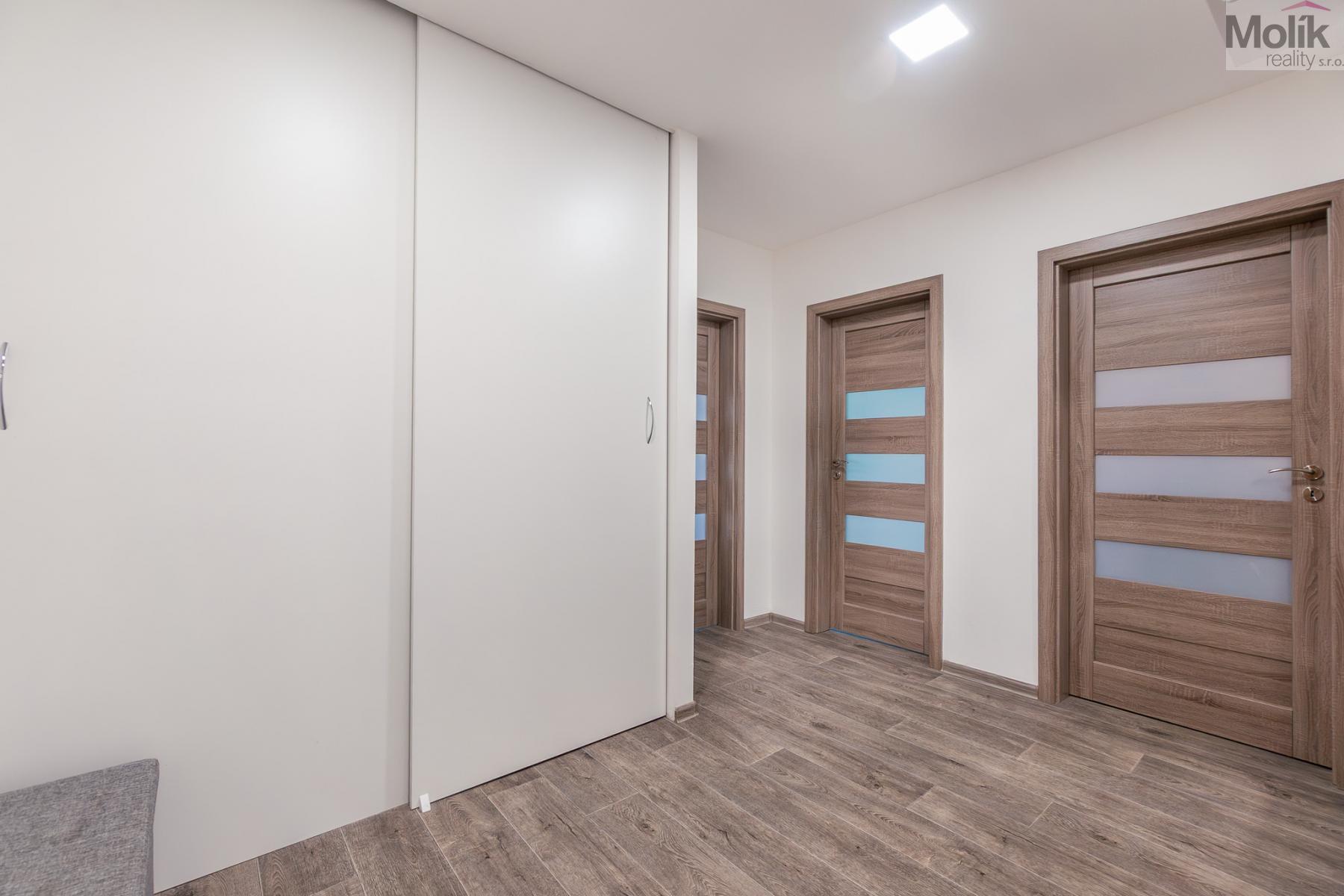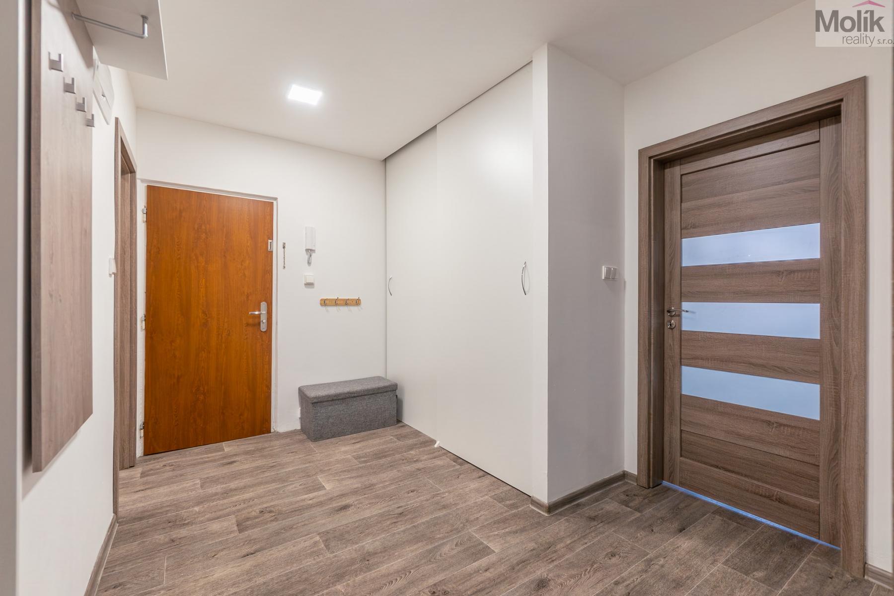 Byt prošel kompletní a zdařilou rekonstrukcí a nabízí vysoký komfort bydlení. Dominantou je moderní kuchyňská linka vyrobená na míru s vestavěnými elektrospotřebiči. Velkou výhodou jsou dvě koupelny a dvě samostatná WC, což zajišťuje pohodlí i pro větší rodinu.