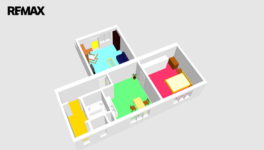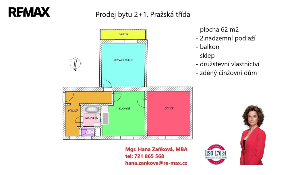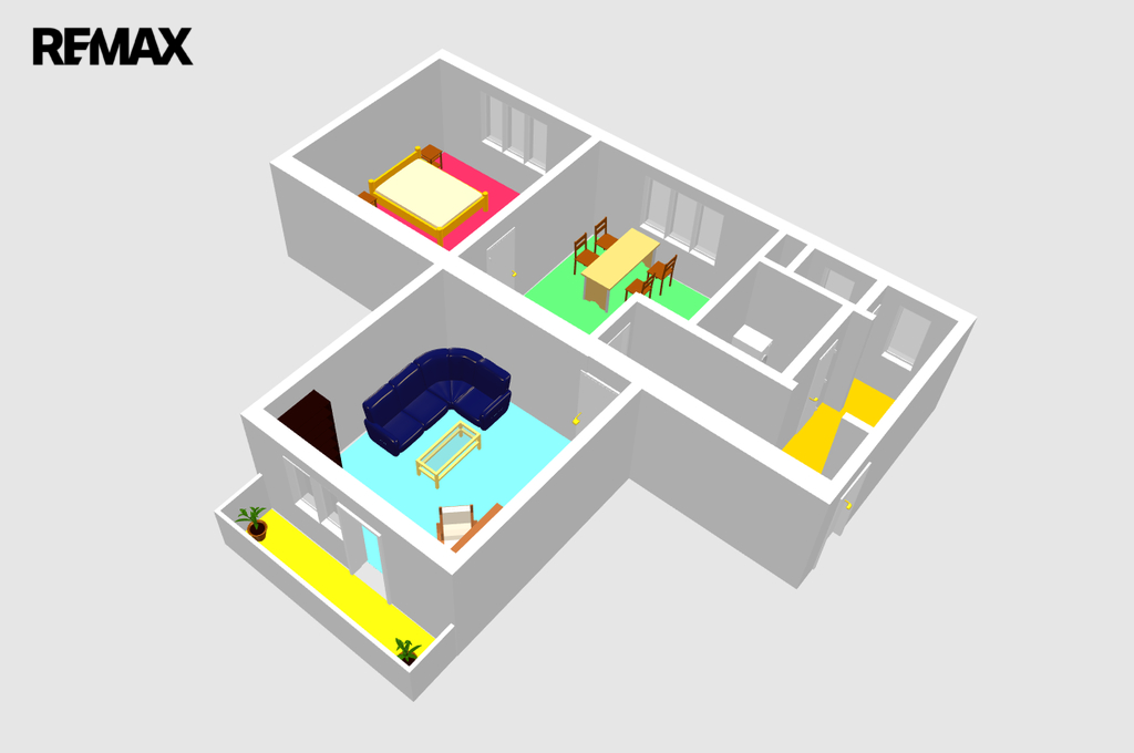 Byt o celkové podlahové ploše 67 m² (včetně balkonu a sklepa) je situován ve 2. nadzemním podlaží zděného domu a prošel částečnou rekonstrukcí.