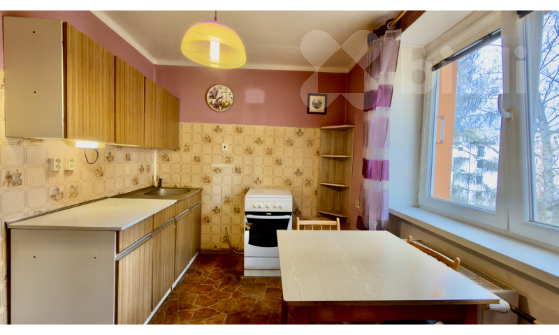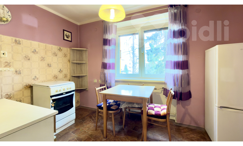 Jedná se o bytovou jednotku o dispozici 1+1 a velikosti 29,4 m2 , skládající se z pokoje (14,1 m2 ), kuchyně (5,4 m2 ), předsíně (3,4 m2 ), koupelny (2,5 m2 ) a sklepa umístěného v suterénu domu (4 m2 ). Byt je po částečné rekonstrukci z roku 2010, kdy byly vyměněna okna za nová plastová, proběhla rekonstrukce koupelny a byly instalovány nové elektrorozvody pro kuchyň a koupelnu. Jinak je byt v původním udržovaném stavu. V domě je zaveden plyn, vytápění je zajištěno centrálně dálkové. Velmi nízké poplatky.