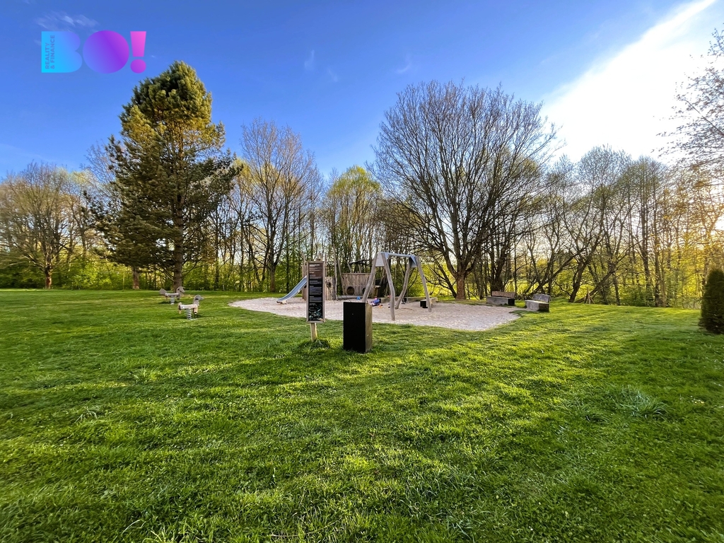 Hned za domem je louka, na které se nacházejí dvě dětská hřiště.