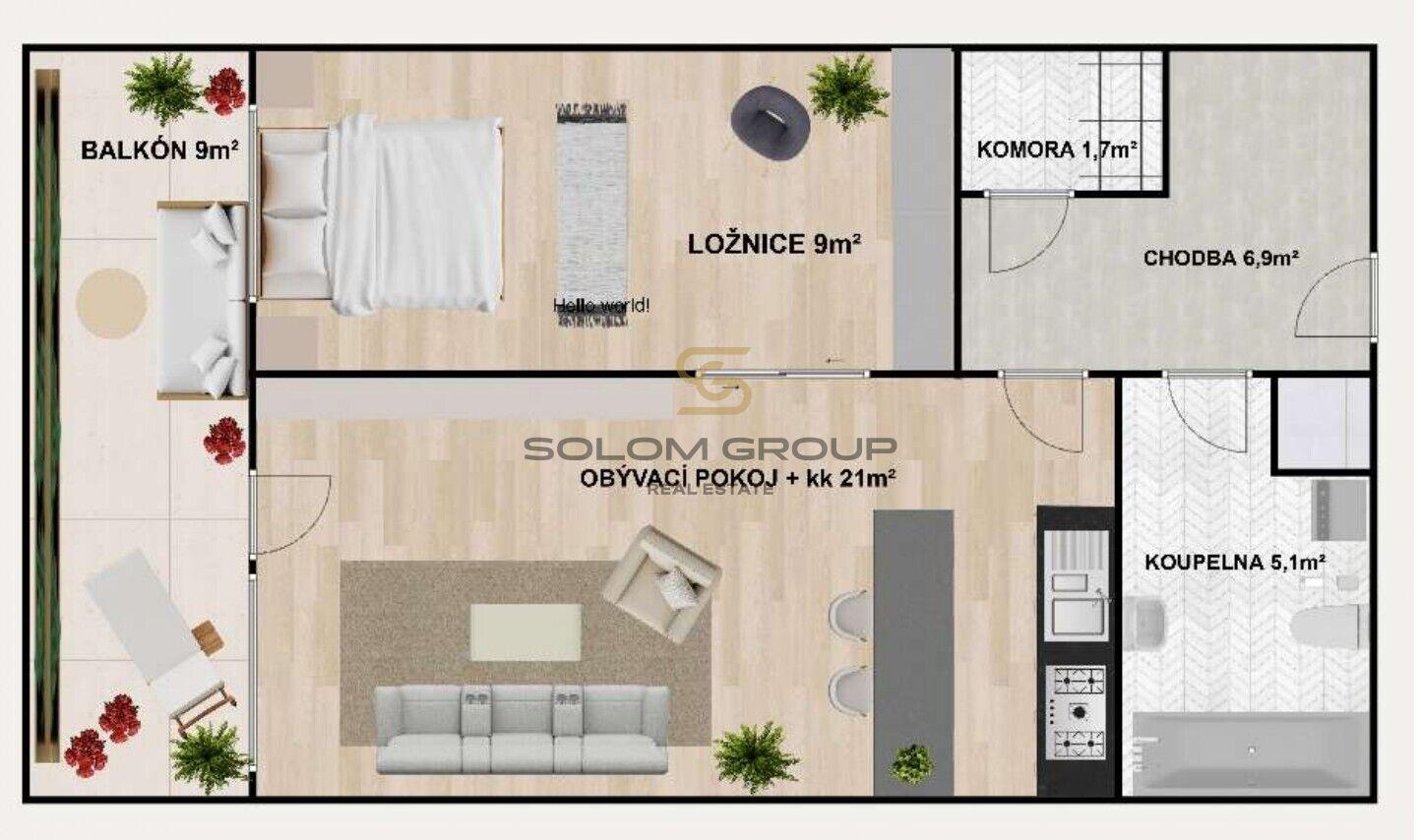 Prodej bytu 2+kk, 46,9 m² + balkón 9 m², který se nachází v 6.NP (poslední patro) cihlové novostavby v rezidenci Kaskády Barrandov, Praha 5 – Hlubočepy (Dům J). Výhled JZ. V bytě praktická komora na ukládání věcí.